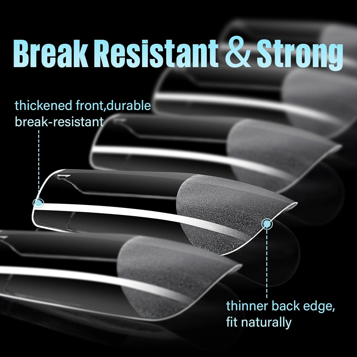 - 【Fit Natural Nails】The design feature of thick front edge and thin rear edge makes the nail tips fit our nail bed better. Smooth curves ,radians and good color condition, without separation or exposure, and your nails will look more natural. No tightness on nails.