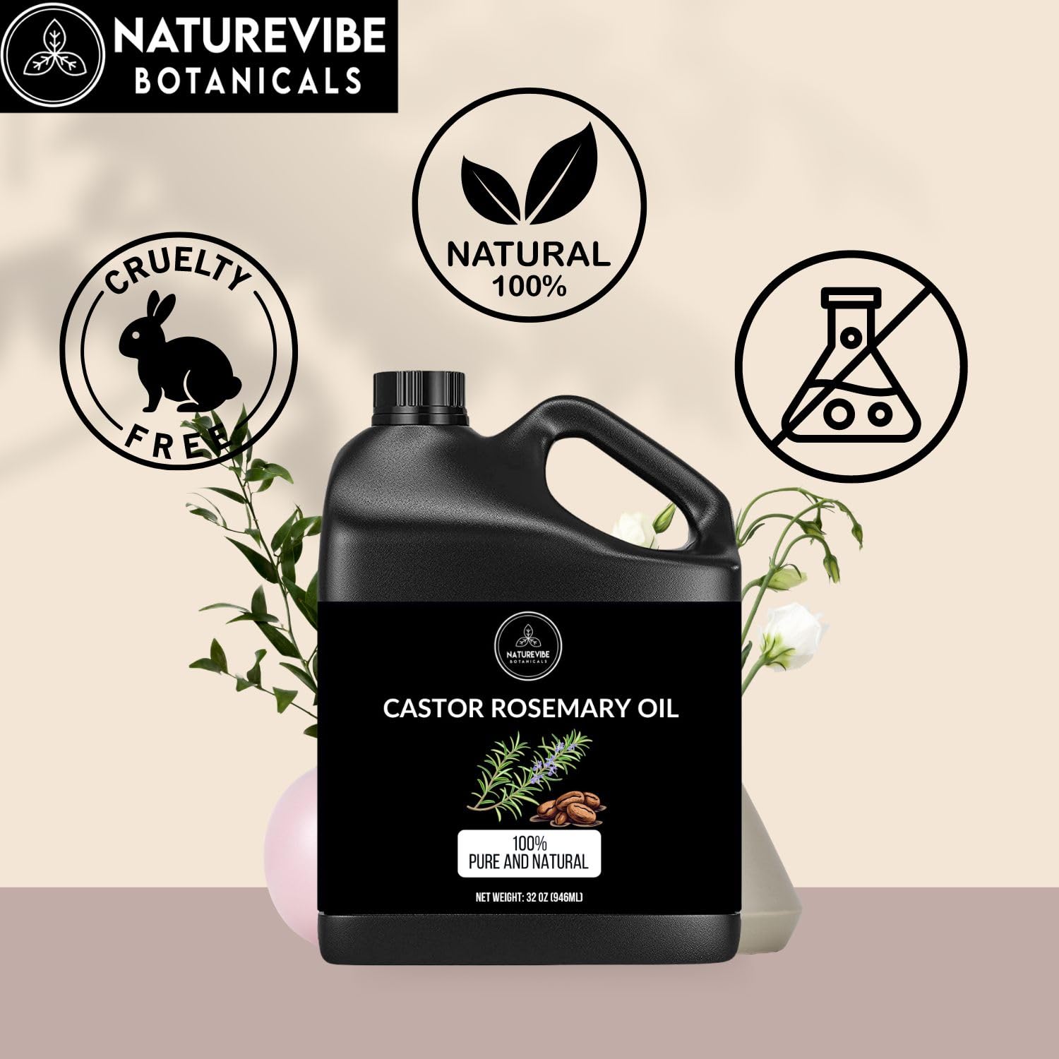 - ✅Naturevibe Botanicals Castor Oil with Rosemary Oil 32 Ounces 100% Pure & Natural | Non-Greasy and Lightweight | Eyelashes Eyebrows Hair Care | For Healthy Hair and Body Oil (946 ml)