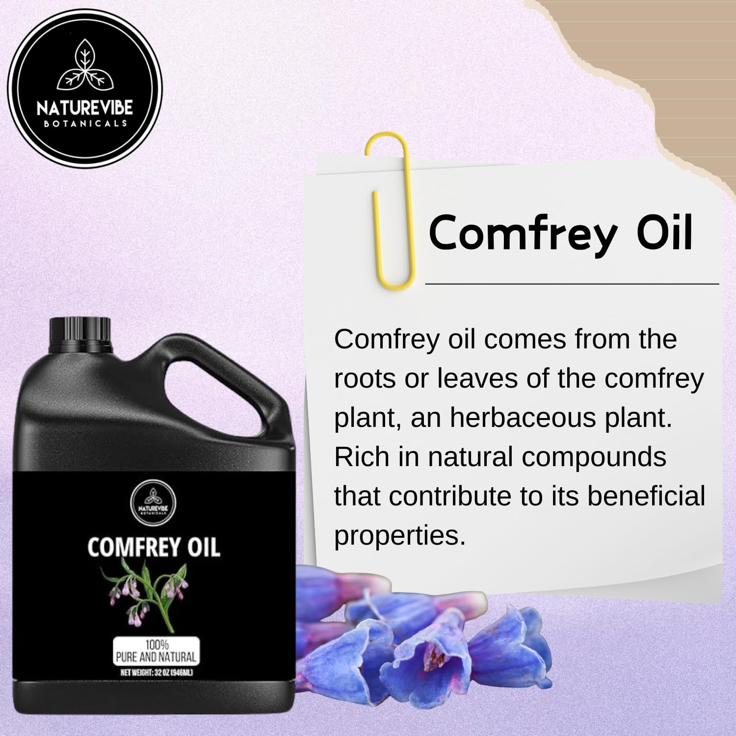 - ✅Comfrey Oil 32 Ounces by Naturevibe Botanicals 100% Pure & Natural Cold Pressed | Moisturizing & Nourishing Oil for Face, Hands, and Body | DIY Ingredient for Skincare (946 ml)