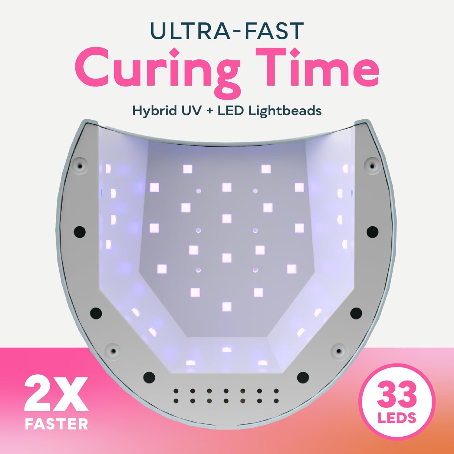 - Professional Quality: Our UV nail lamp for gel nails is designed to produce salon-quality results at home. It is compatible with all gel nail polish types, including base coat, top coat, color gel, hard gels, builder gels, acrylic, and many more