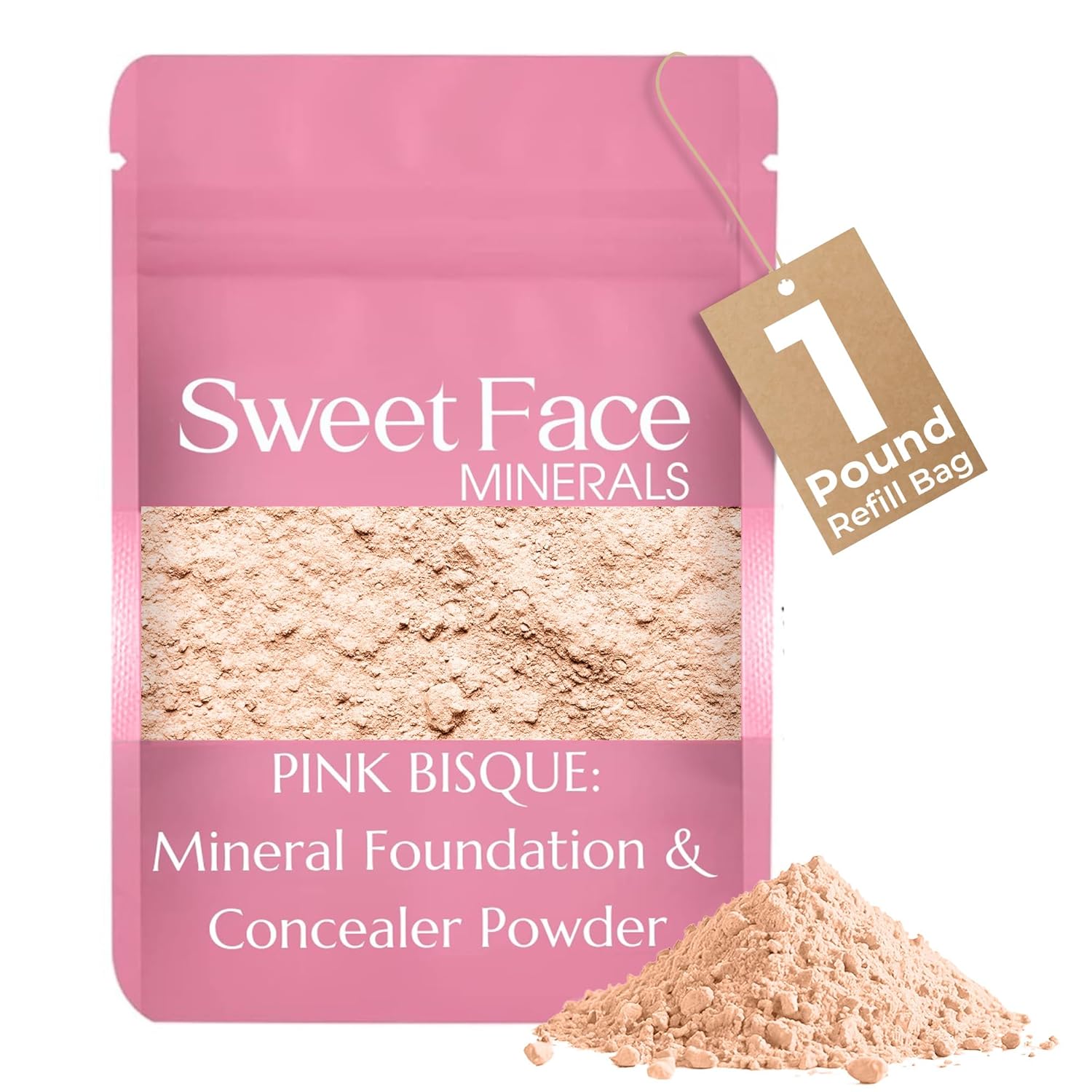 Foundation Powder Refill (Pink Bisque)(1 Pound Bag) By Sweet Face Minerals, Lightweight Mineral Loose Makeup Powder with SPF 20, Full Coverage Flawless Finish, Talc-free, Cruelty-Free, Refill Pouch