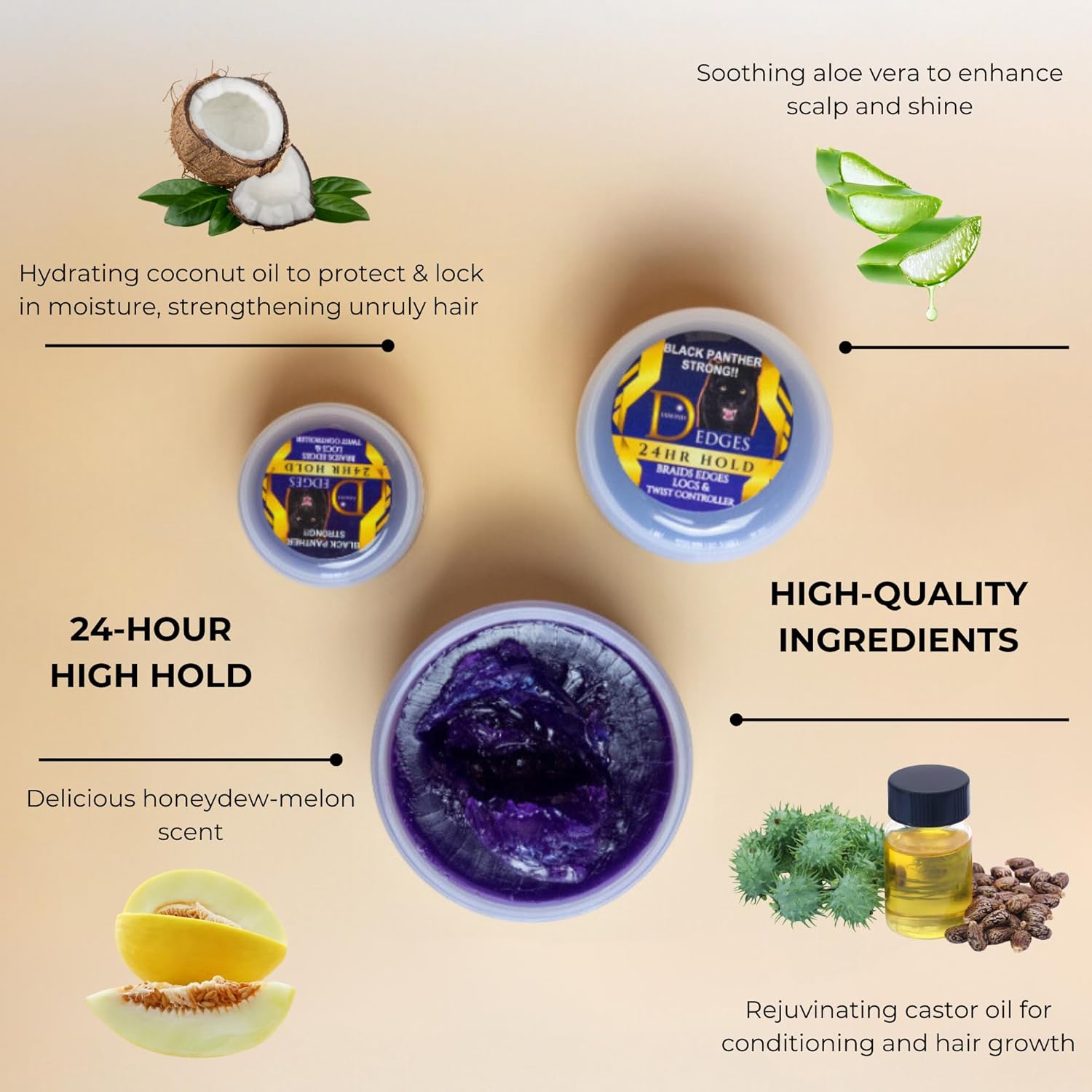 Black Panther Extra Hold Edge Control & Braiding Gel – Natural Instant Edge Control for Black Hair, 4C Gel for Women & Men. 4 oz, Purple
