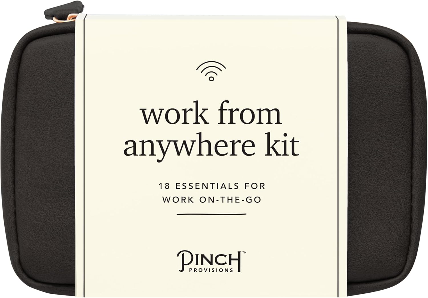 Pinch Provisions Work from Anywhere Kit, Includes 18 Essentials to Help You Stay on Task, Must-Have Essentials, Compact Multi-Functional Vegan Leather Pouch, Black