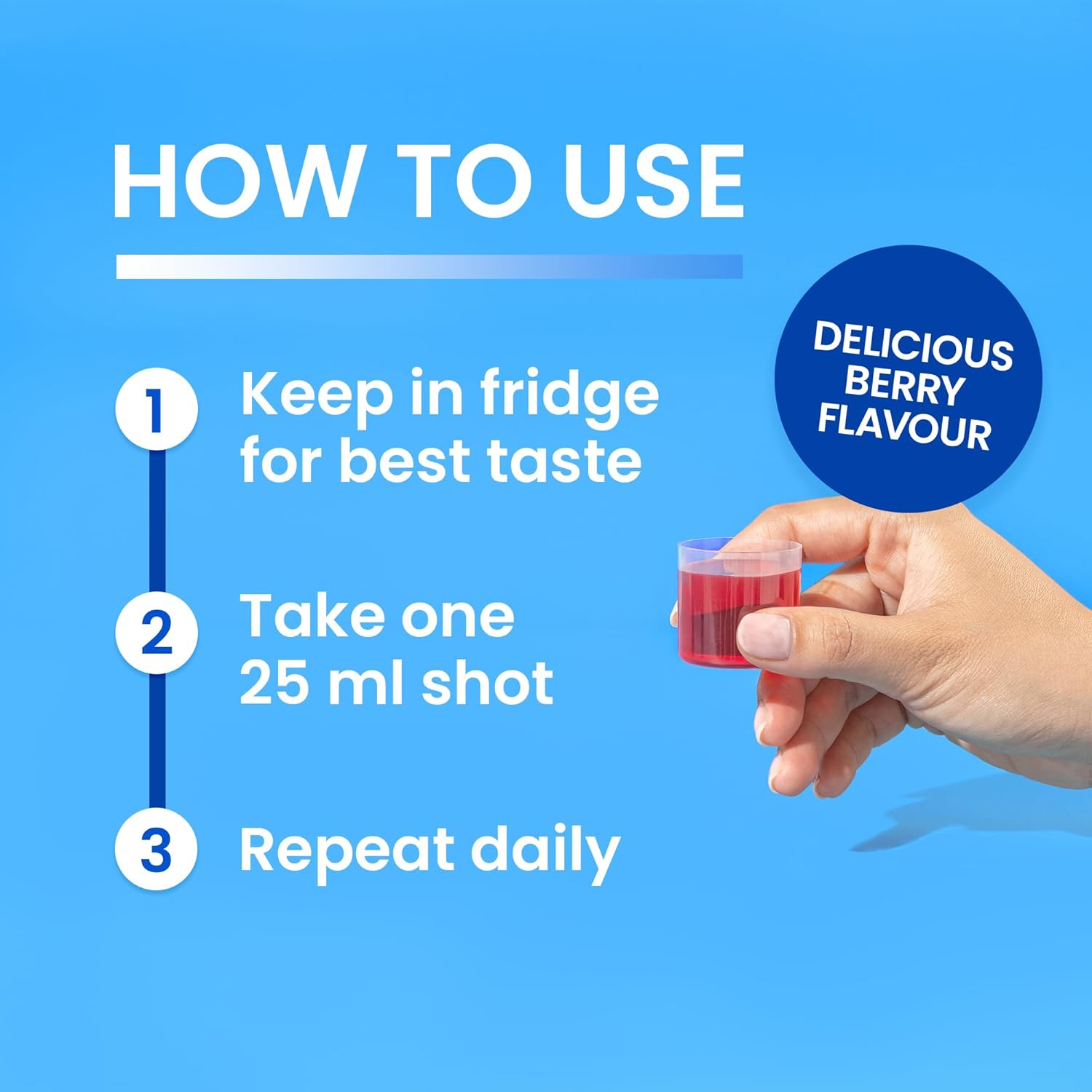 - 60-DAY SUPPLY: Three 500 ml bottles for a 60-day supply with a 25 ml daily dose; enjoy the delicious Natural Berry flavour, sugar-free, with 100% natural flavour and colour; keep refrigerated for optimum taste; made with 100% recyclable packaging