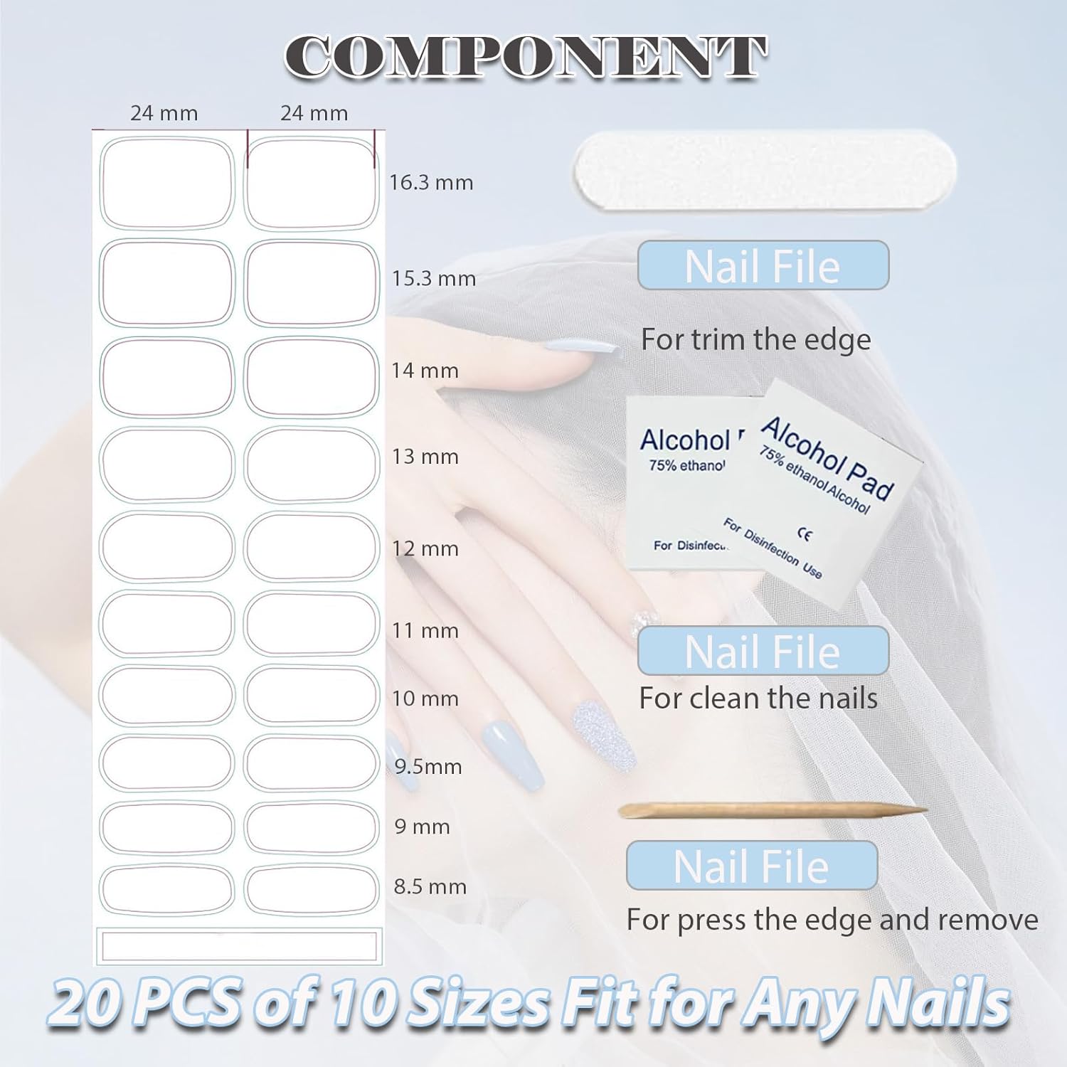 - NAIL KIT INCLUDE: Each set includes everything you need for a perfect manicure: 20 pcs semi-cured gel nail strips, nail file, cuticle stick, and prep wipes. It's a nice choice designed for both beginners and experienced users. And we provide 7X24 hour service, if you have any questions, please let us know