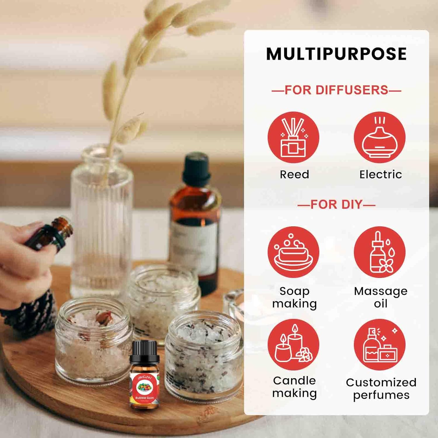 - Use Scene Of Fragance Oils - Suitable for diffuser, vaporizing, inhalation, cleaning, perfume (living room, bathroom, study room), office, outdoors, campground, yoga room, car and so on.
