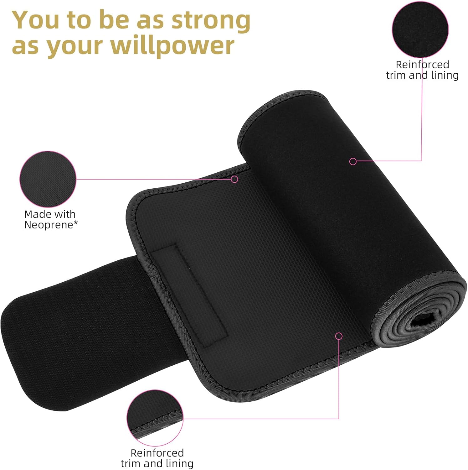 - [Made to Fit] Sweat belts for weight loss have (M,L,XL) three sizes so that, Designed to accommodate all shapes and sizes,our durable, reinforced trim and lining, and double velcro because we want to make sure this waist trainer stays your gym buddy for a long time.