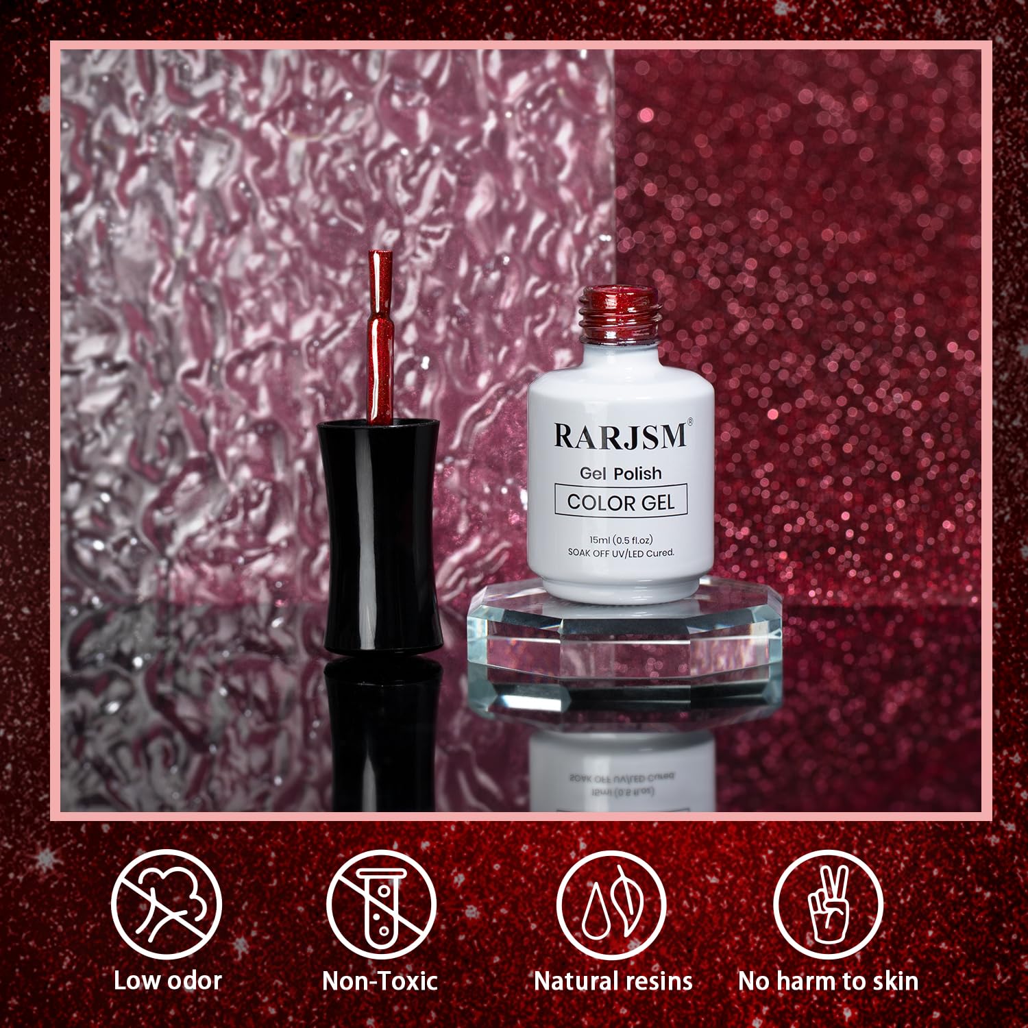 RARJSM Cat Eye Gel Nail Polish Diamond Dark Black Wine Red Cateye Velvet Glitter Gel Polish 15ml Single Bottle with Magnet Stick UV LED Curing Requires Soak Off for Home Salon Christmas Manicure