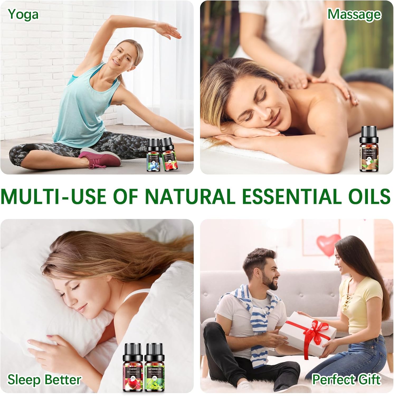 - đ„„ăMultiple UsesăThese essential oils can be used for aromatherapy, diffuser, massage, skin & hair care. Simply add a few drops to any diffuser and fill your entire room with that aroma, suitable for home care (large room, bedroom, living room, bathroom), office, outdoors, campground, yoga room and spa for a whole day relaxation.