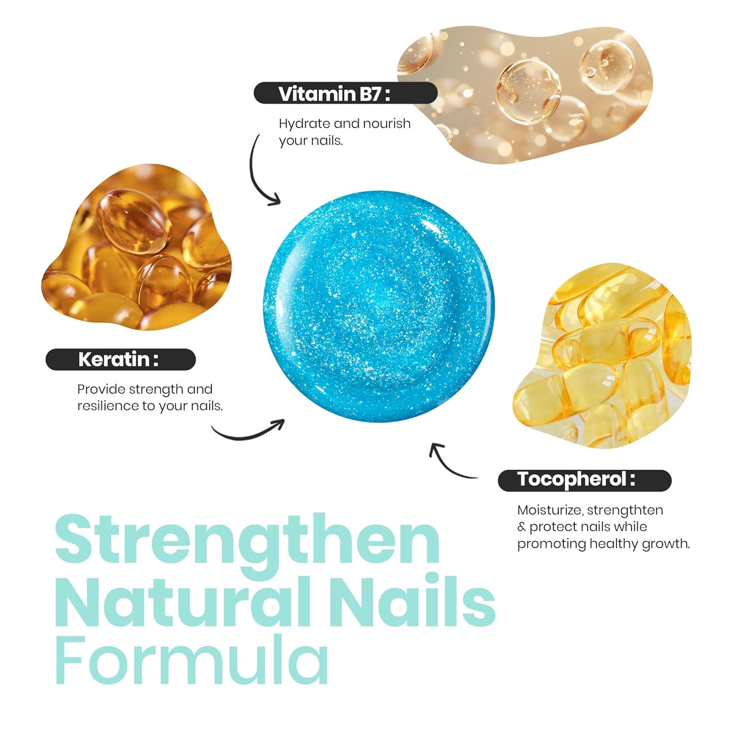 - Beetles 2 in 1 Nail Strengthener Polish :The sky blue nail polish formula contains at least 3 ingredients to protect nails, which can strengthen and thicken nails and accelerate nail repair, so that your nails have a beautiful appearance and also make your nails healthier!