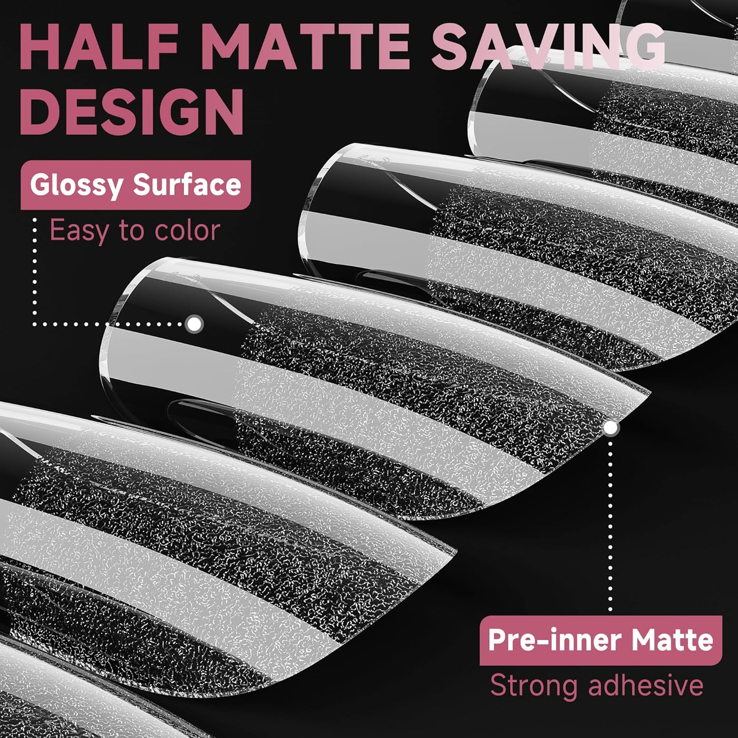- ❤HALF MATTE GEL NAIL TIPS-Our medium square nail tips pre-shape half matte saving design, no extra filing required! The clear square nails surface with a glossy finish for easier to color. The inner deep matte firmly adheres to the nail without worrying about the nail pop off easily. Easily get beauty that lasts 28+ days. We are committed to bringing you professional, efficient and safe nail care.