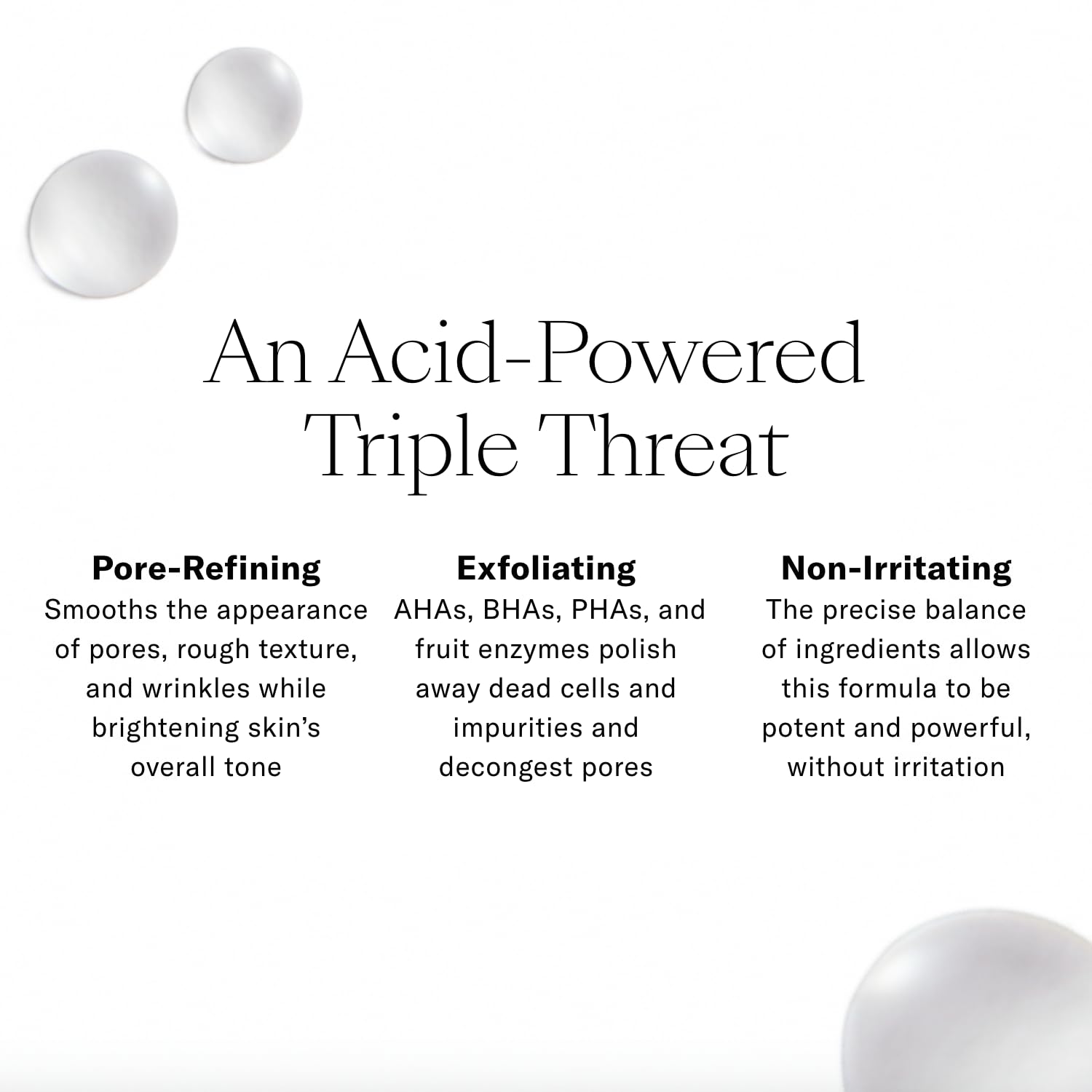 - Triple Hydroxy Resurfacing Liquid - This formula can help refine pores and rough texture. By optimizing AHAs, BHAs, and PHAs with fruit enzymes, skin is renewed and transformed through exfoliation of dead skin and impurities, decongestion of clogged pores, and gentle polishing of the skin’s surface.