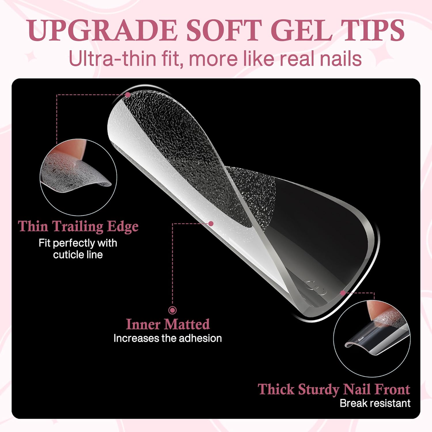 - ❤️ Foldable Soft Gel Tips: Crafted from gelly soft gel material, these fake nails leave no trace even when bent. Their bright clarity allows for easy pressing, trimming, and painting, helping you create your ideal nail shape effortlessly. Perfect for a true DIY manicure.