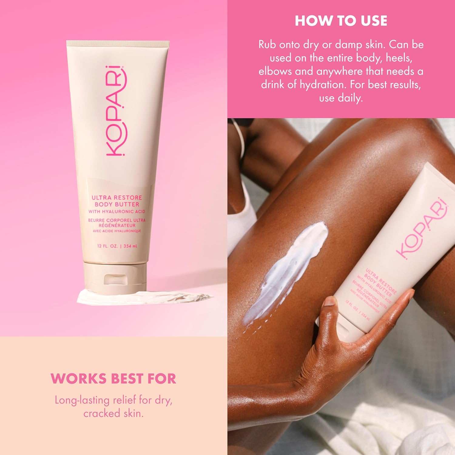 Kopari Jumbo Ultra Restore Body Butter, Whipped Lightweight Formula, Hyaluronic Acid & Mango Seed Butter, Deep & Long-Lasting Moisture, Coconut 12 oz