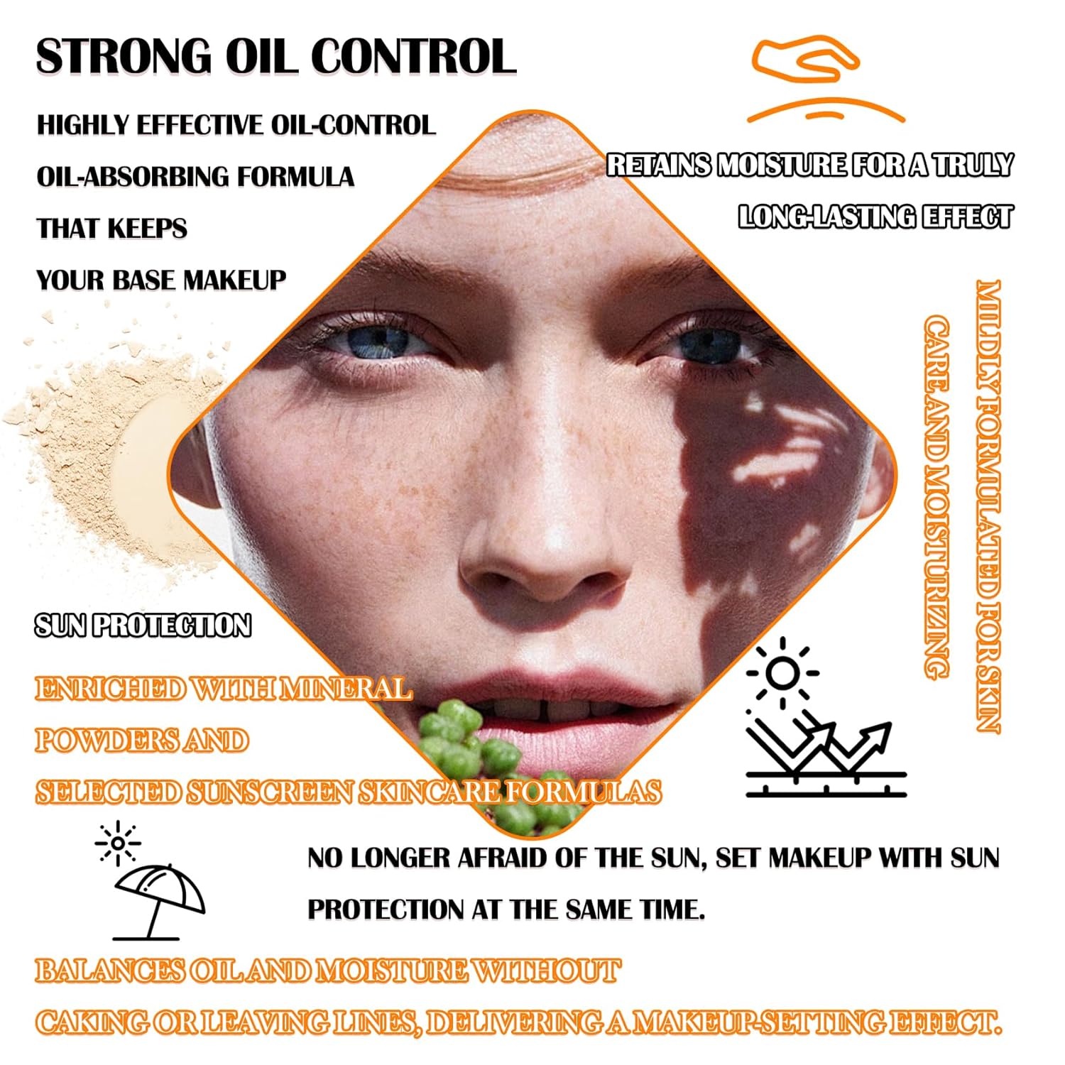 2 Pcs Sunscreen Setting Powder,SPF 50+ PA++++,Oil Control Waterproof Mineral Powder Sunscreen,Lightweight Long Lasting Matte Sunscreen Powder with Sunscreen Brush