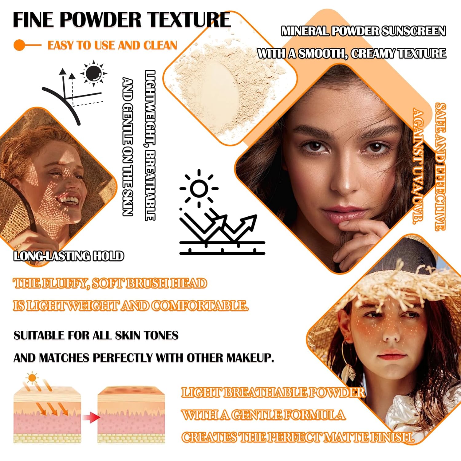 - đ ăLong-lasting WaterproofăMineral sunscreen powder, excellent waterproof performance, even if you participate in outdoor activities or high-intensity sports, you can maintain a clear and matte makeup all day long.