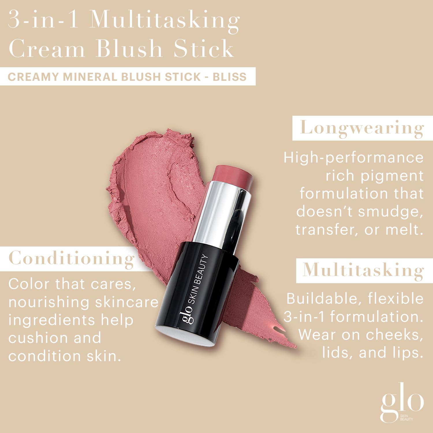 Glo Skin Beauty Cream Blush Stick (Bliss) | 3-in-1 Multitasking Long-Wear Cheek, Lips + Lids Stick | Packed with Skincare Benefits