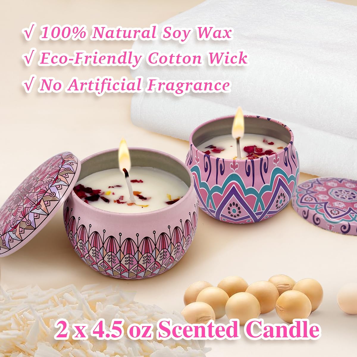 - Soothing Scented Candles: Set the mood for a relaxing spa day or a peaceful evening at home with our premium scented candles. Crafted from high-quality wax, these candles offer a long-lasting burn and fill your space with a serene aroma that soothes the soul and enhances your environment.