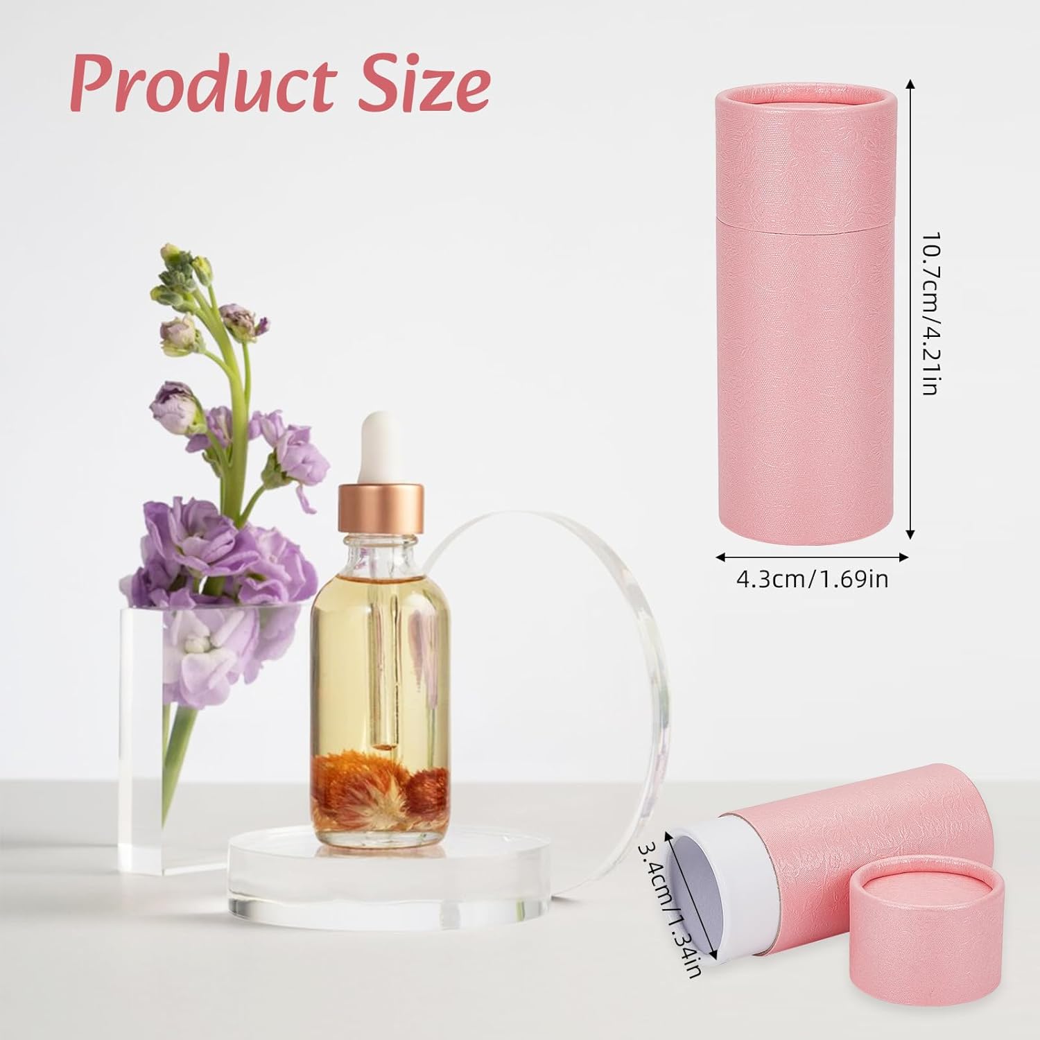 NICENEEDED 10 Pcs 30ml Empty Kraft Paper Jar Tube, Pink Round Paper Cardboard Containers With Lid, Essential Oil Bottle Packaging Case Gift Paper Tube for Pencils Tea Caddy Coffee Cosmetic Crafts