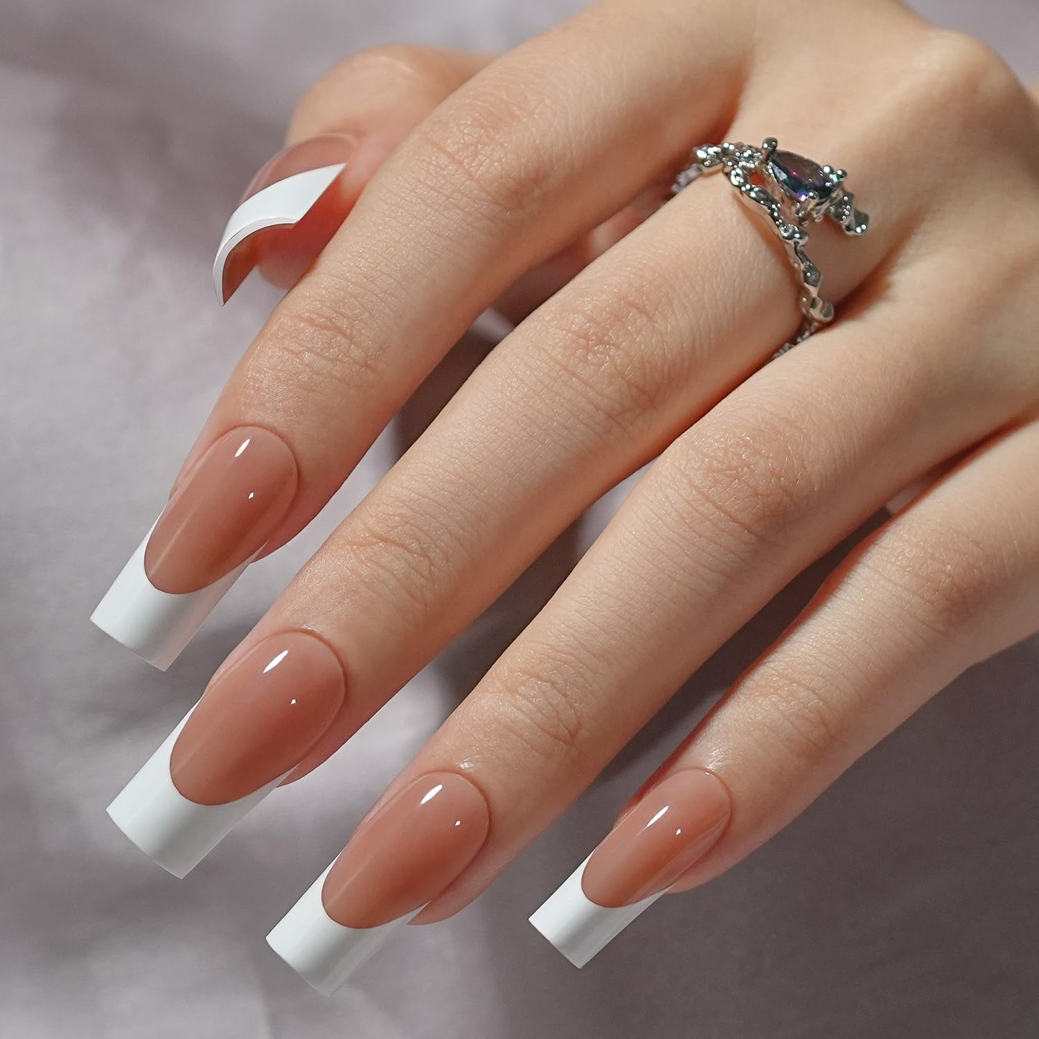 French Gel Nail Tips - Jofay Fashion French Tip Press on Nails, 10-Piece Set 320Pcs Brown Long Square Nail Tips, No Need to File Acrylic Fake Nails for Nail Art DIY & Nail Extension, 16 Sizes