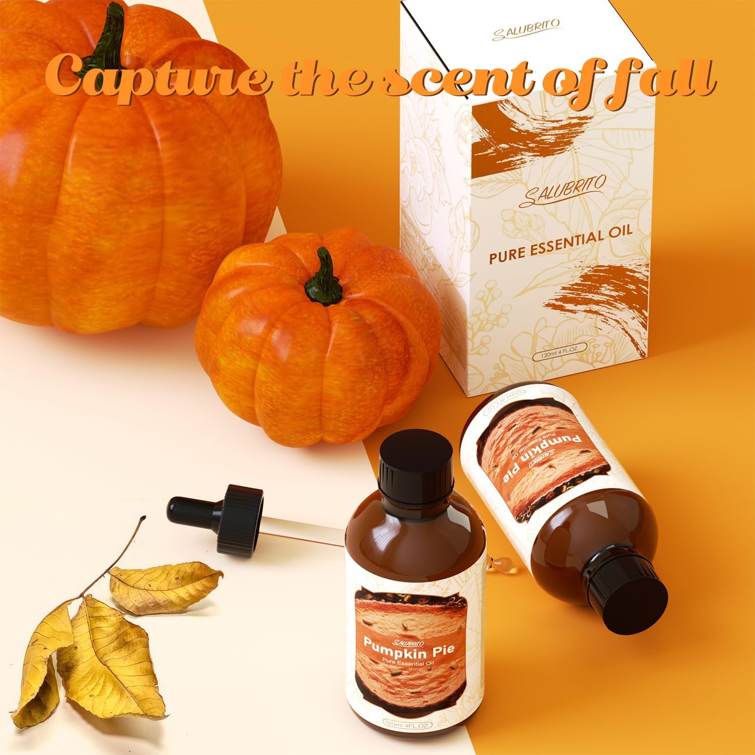 SALUBRITO Pumpkin Pie Essential Oil 4 Fl.Oz (120ml), Pure & Natural Fragrance Oils, Fall Essential Oil for Diffuser, Candle & Soap Making, Massage, Strong Scented Oil