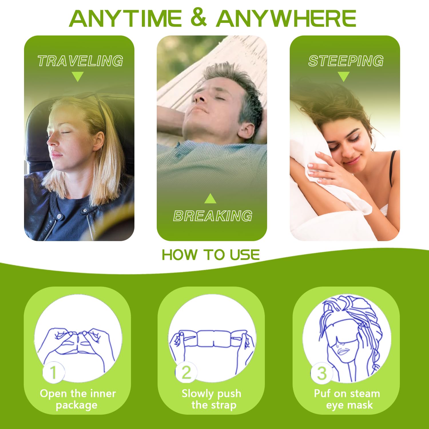 - [Luxuriously Revive Vision] Indulge in the calm of our Steam Eye Mask, scented with green tea. It boosts sleep and eye vitality. The warm steam banishes puffiness.
