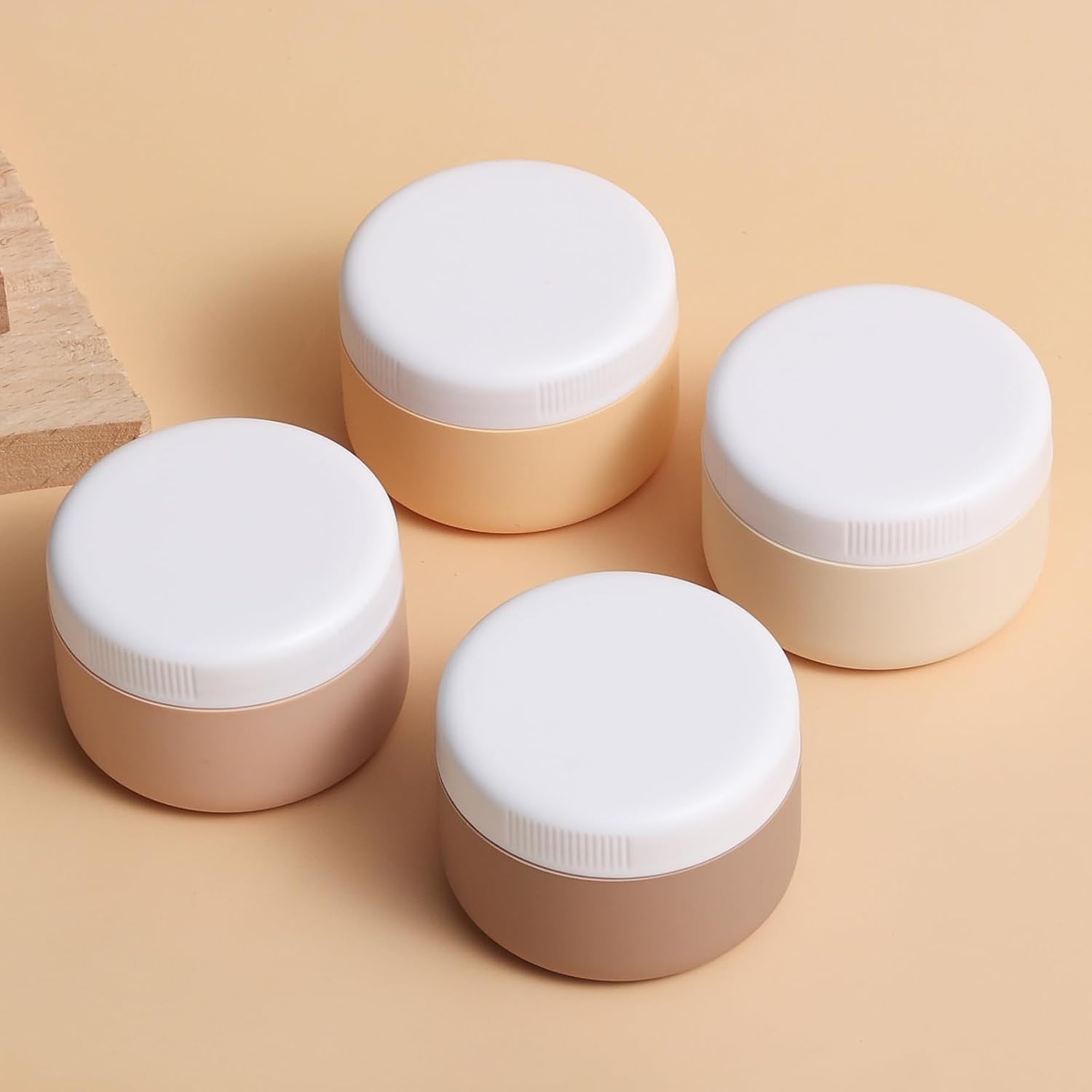 - Travel Size Cosmetic Containers: The containers for toiletries includes 4 travel silicone cream jars are made, Different colors make it simple to identify which product is in each container.