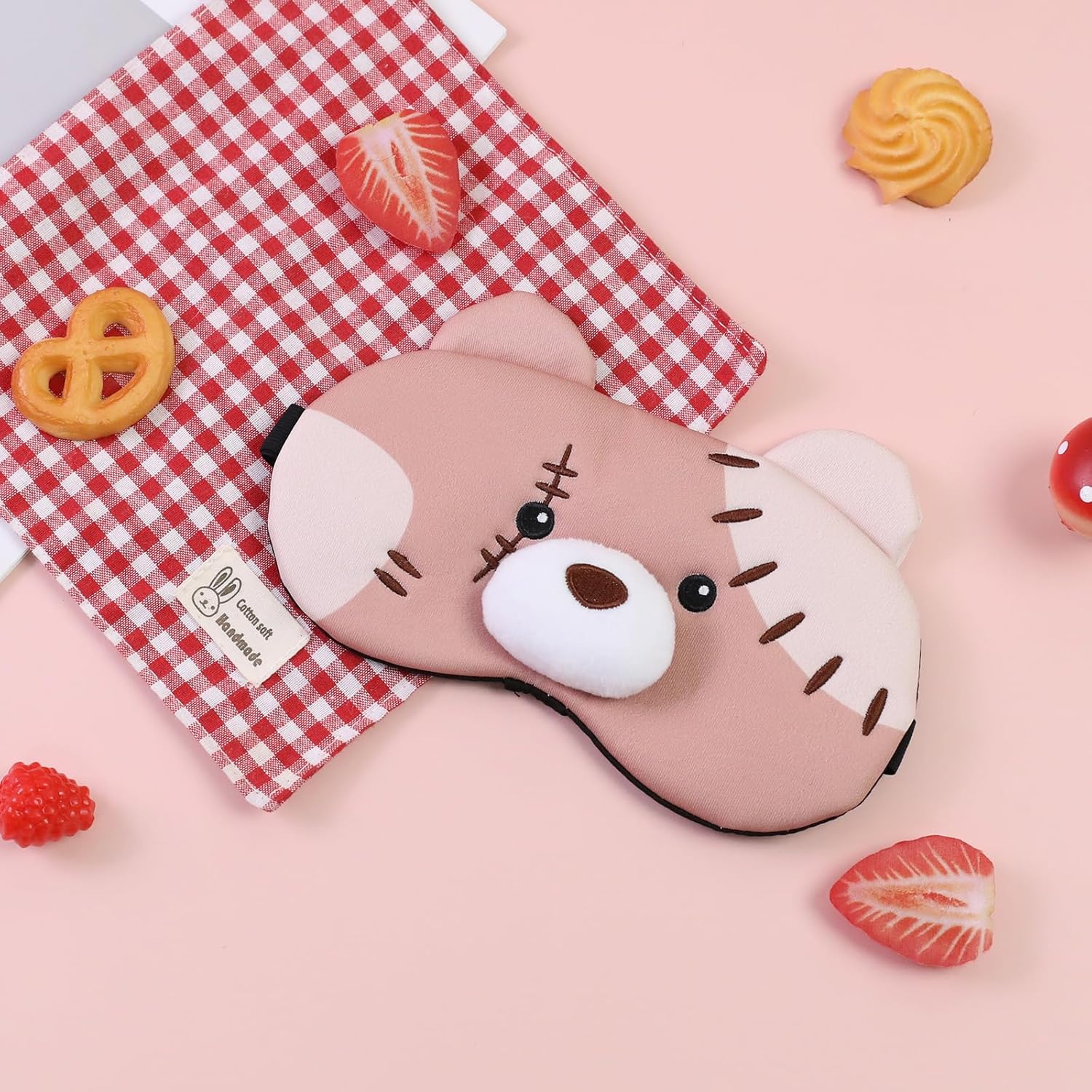 PERFECTSIGHT Sleep Eye Masks, Cute Plush Sleep Eye Cover Lightweight Adjustable Eyeshade Faux Fur Mask Cover for Women Men Kids Sleep Travel Nap, Big Eye Girl, Purple Nose, Brown Pudding Bear