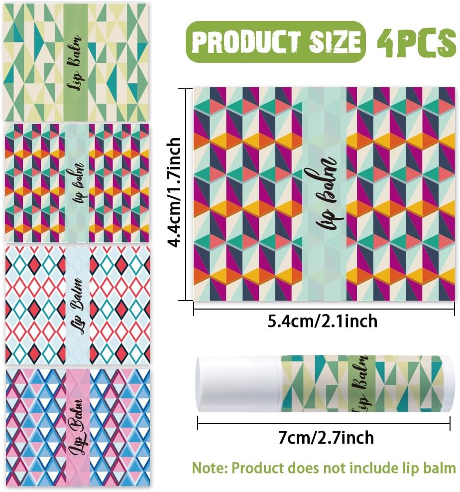 - Ample Quantity--You will get a total of 4 different styles of texture pattern lipstick tube stickers, printed "lip balm", 25pcs/style, 100pcs in total, size size about 54mm/2.1 inch wide, 44mm/1.7 inch long.