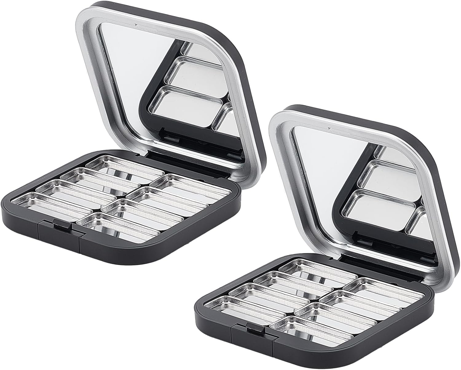 - SIMPLE TO USE: The empty eyeshadow palette is a refillable storage case designed with 8 grids to store different colors. Simple yet delicate, it is perfectly sealed to prevent unnecessary leakage.
