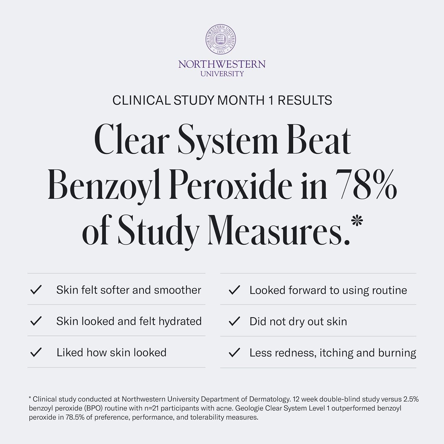 Geologie Clear System | 3-Step Acne Treatment & Skincare Set | Clears Skin Fast | Acne Gel Cleanser, SPF15 Day Cream & .3% Retinol Face Cream For Men & Women | Month 3+ / Level 3