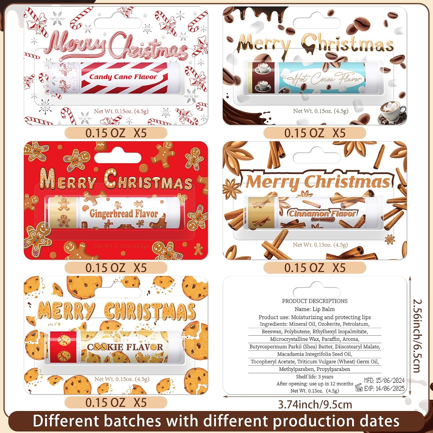 - What You Will Receive: 25 pcs Christmas regular tube lipsticks with blister card, 5 styles in total, 5 pieces each, including candy flavor, hot cocoa flavor, cookie flavor, cinnamon flavor, gingerbread flavor, sufficient quantity for giving to relatives and friends