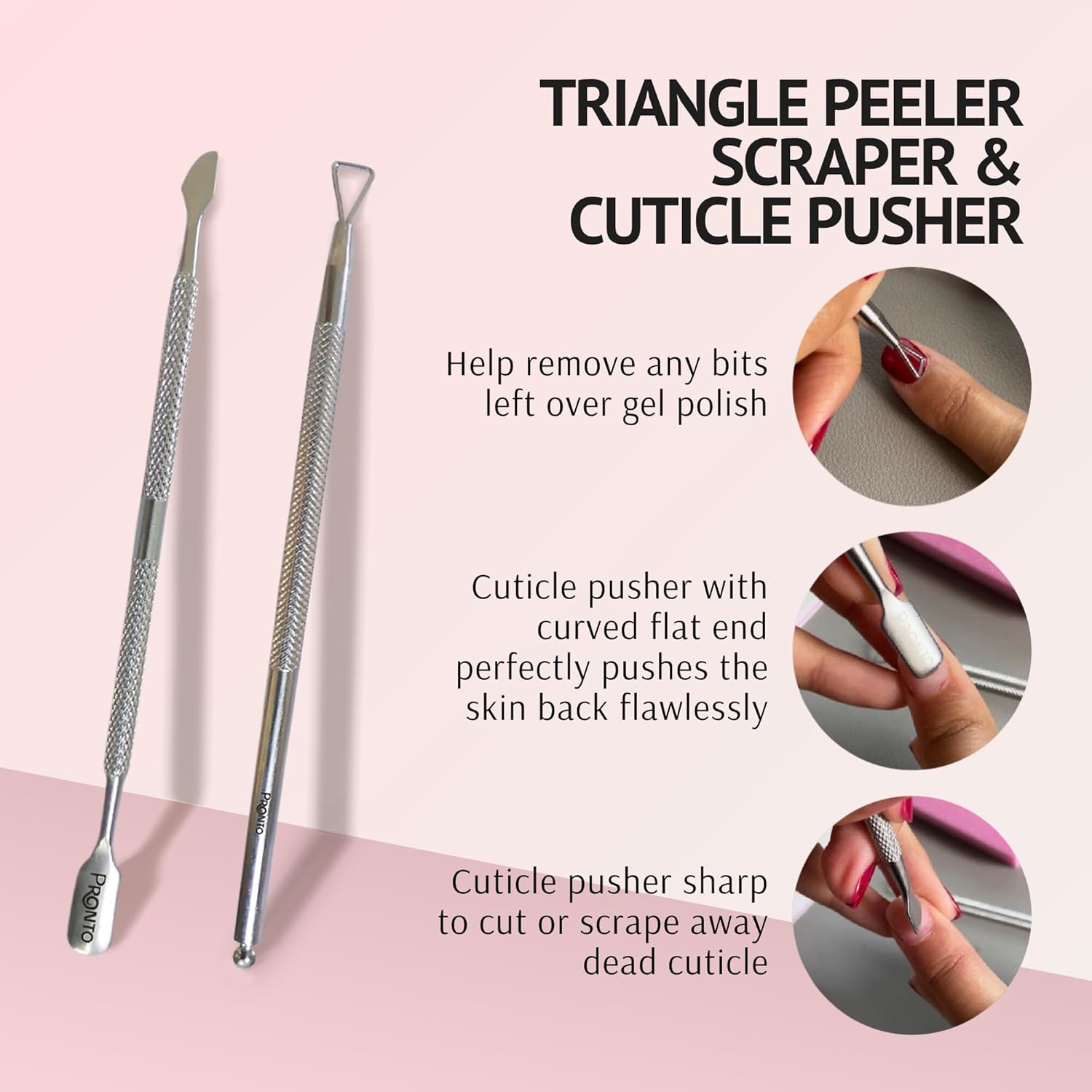 - ULTIMATE NAIL CARE KIT: Say goodbye to stubborn cuticles with our cuticle remover tools. Featuring a Cuticle pusher, Nail File, Nail Buffer, and Nail Scraper. This set is designed to provide the ultimate cuticle care, keeping your nails looking neat and polished!