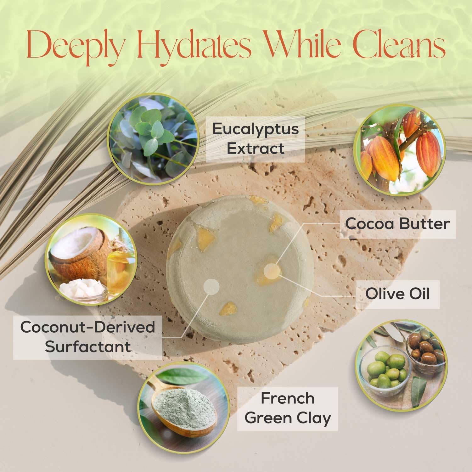 - Aromatherapy For Your Hair: Immerse yourself in a spa-like experience at home with our solid shampoo bar, which is infused with all-natural essential oils for a discreet and refreshing aroma. Discover the calming scents of rosemary, grapefruit, and eucalyptus, and find a hair growth shampoo bar that leaves your hair feeling fresh, and delicately scented.