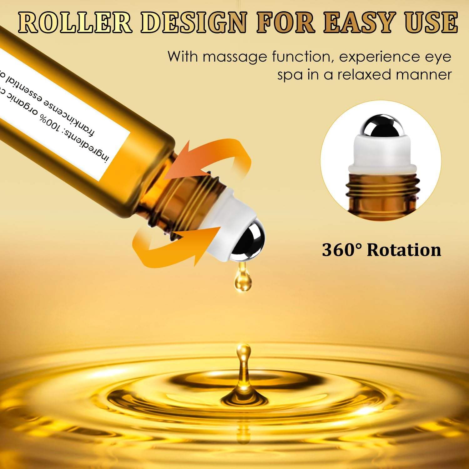 - Castor Oil Roller Ball: The 360 degree eye roller massage ball helps stimulate circulation and drainage around the eye area for a brighter, more awakened look.