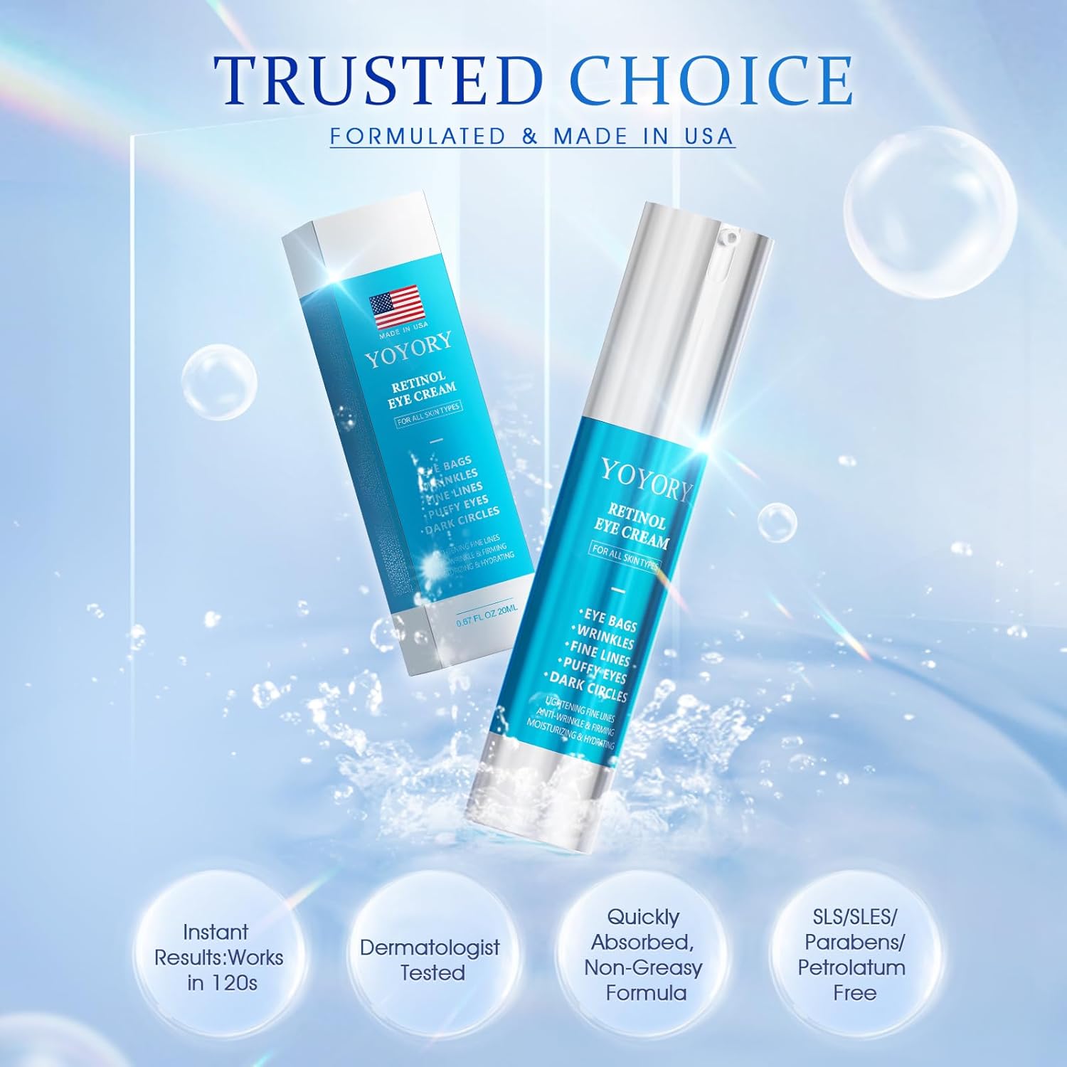 - LUXURIOUS RETINOL CARE: Indulge in the opulence of YOYORY Retinol Eye Cream for dark circles and puffiness, meticulously crafted to elevate the radiance around your eyes. Featuring star ingredients like retinol, this eye treatment creams not only provides intense hydration but also fights free radicals and smooths fine lines with a non-irritating formula, cocooning your skin in a soothing embrace.
