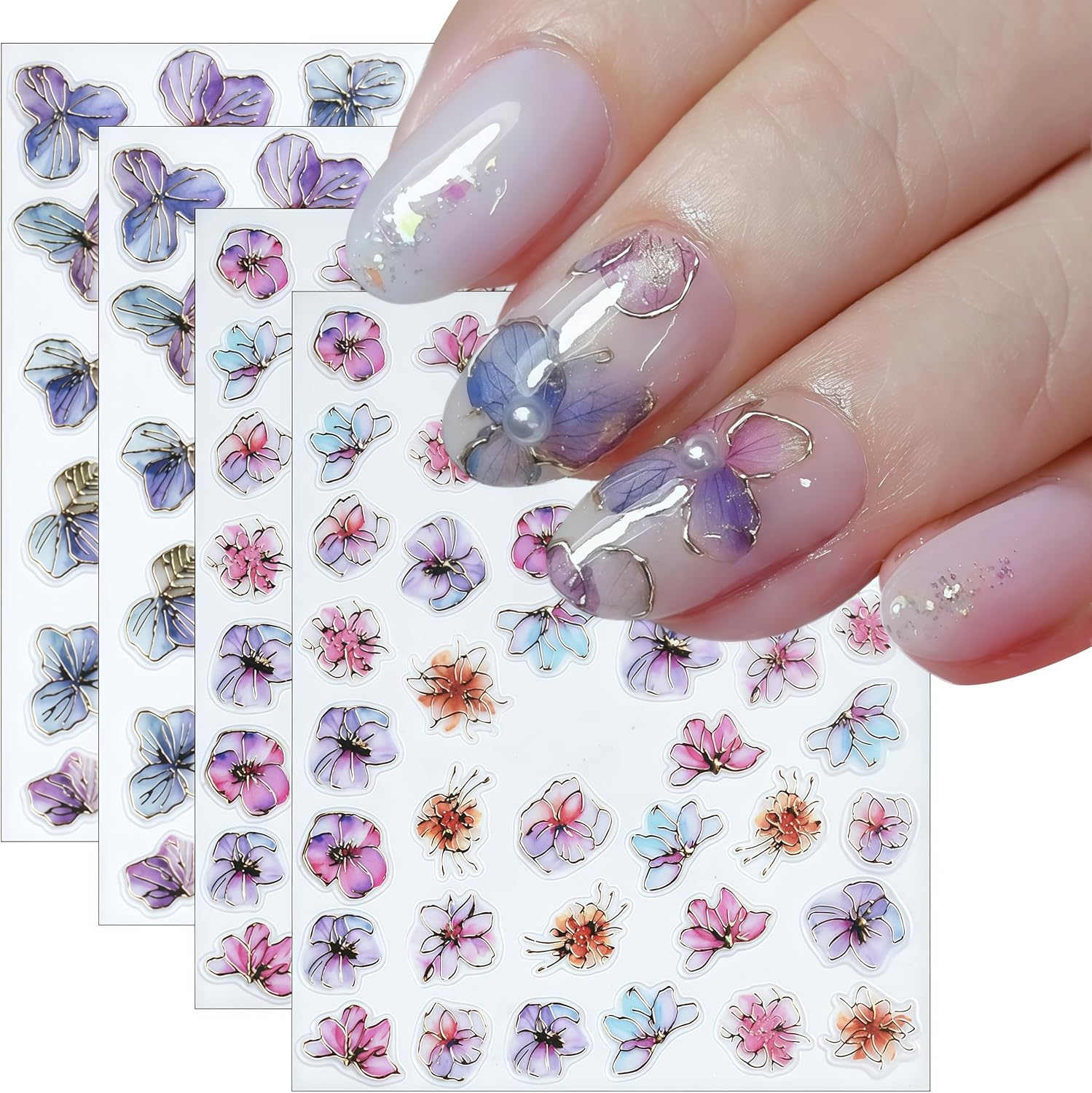 - Cherry Blossom Self-Adhesive Design: 5D cute nail decals for nail art design is simple and quick to use, nail stickers work great on bare nails, they will stay on for a long time and will not peel off your nails, enjoy the feeling of nail art