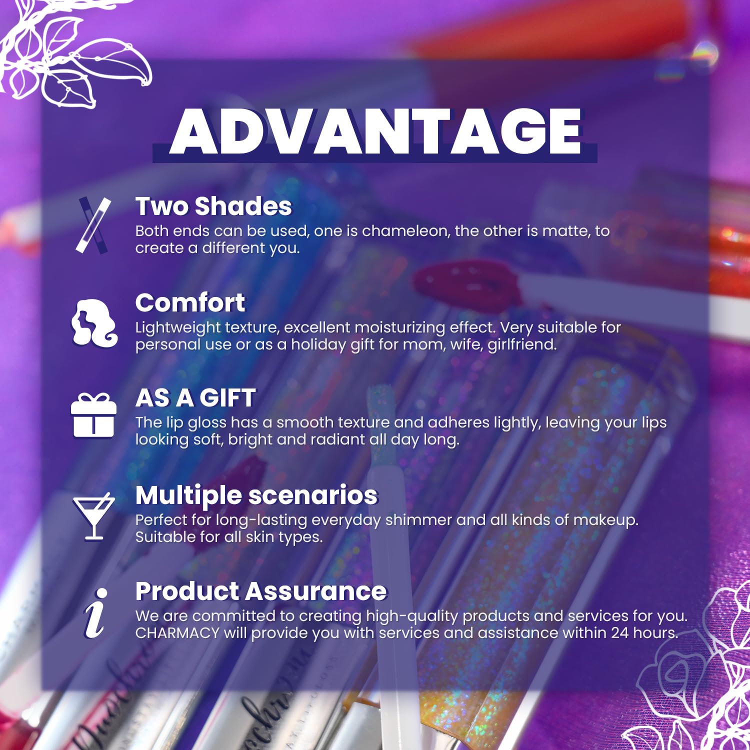 CHARMACY Multichrome Double Head Non-Stick Lip Gloss, Metallic Colourful Lip Glaze, Anti-transfer, Long Lasting Waterproof Liquid Lipstick Makeup (#06)