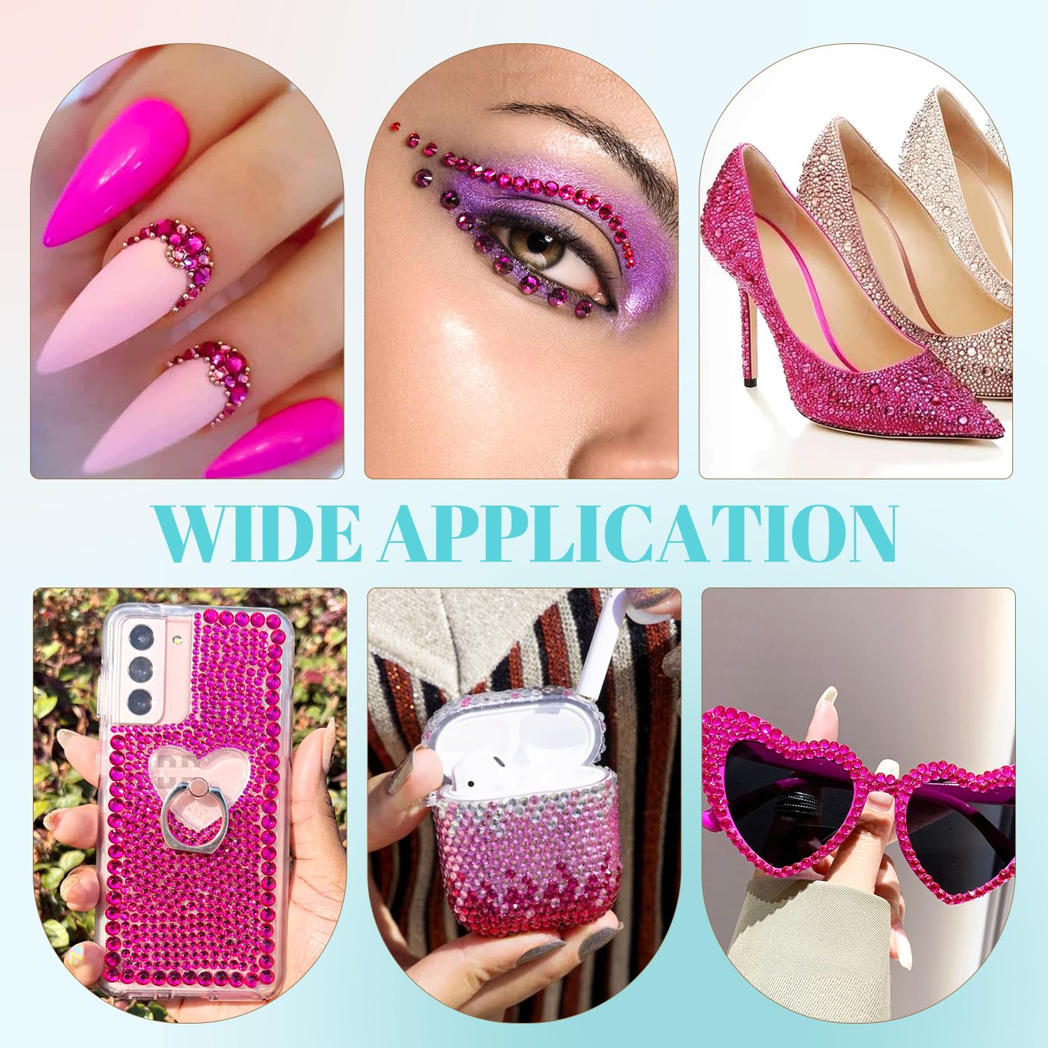 - 💎WIDE APPLICATION -- These sparkling iridescent resin crystals are perfect for creating dazzling looks. Use them for bedazzling DIY crafts like shoes, tumblers, mugs, bottles, phone cases, popsockets, scrapbooks, photo frames, diamond paintings, greeting cards, bags, glasses, guitars, keychains, hats, masks, hair clips, bracelets, wristbands, clothing, wedding dresses, and more. Apply it to what you want to bling!