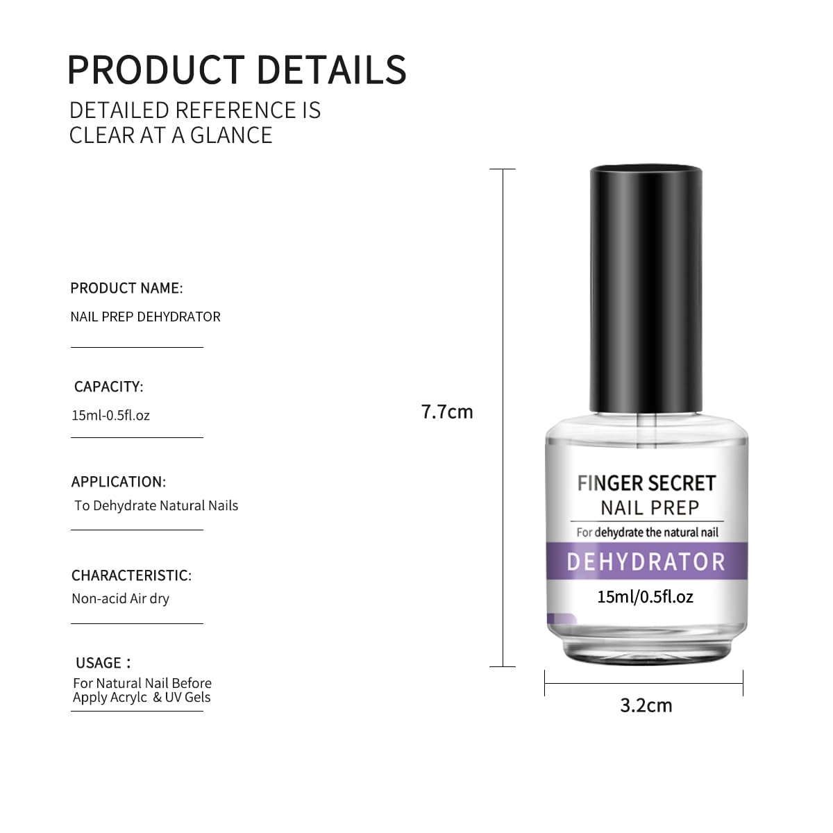 - Non-Acidic Formula: Air-dry nail dehydrator with a non-acidic formula that's gentle on nails. The 15ml (0.5 fl oz) bottle is perfect To Dehydrate Natural Nails
