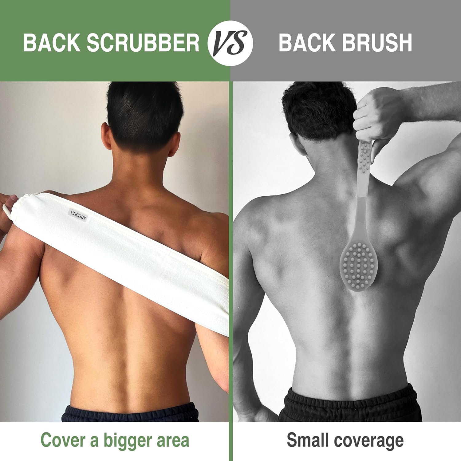 - Back Scrubber for Shower: Reach every inch of your back effortlessly with our ergonomic back scrubber. Featuring two sturdy handles, this tool makes it easy to cleanse those hard-to-reach spots on your shoulders, back, and lower back. After use, simply hang it in your shower using the handles for convenient storage.