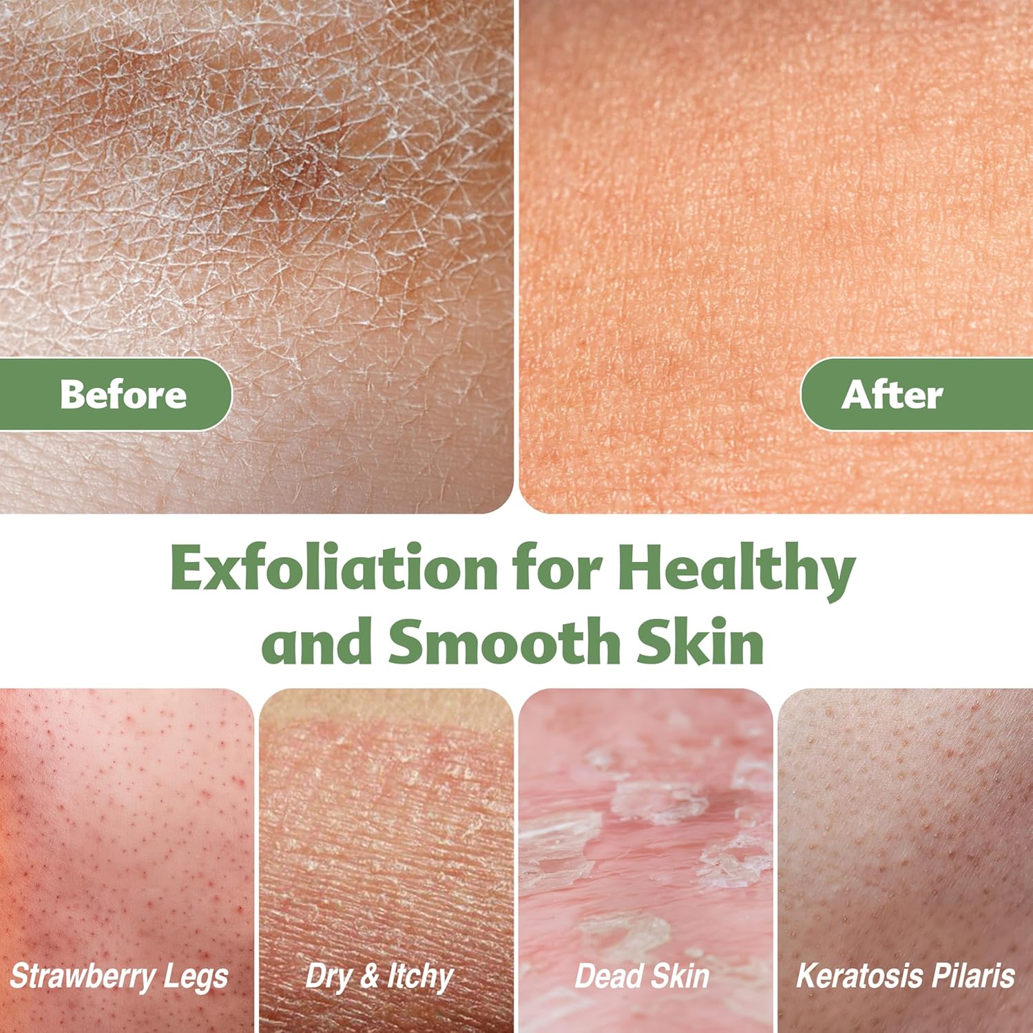 - Exfoliating Body Scrubber: Indulge in spa-quality skincare at home with our thick, durable, and soft organic exfoliating mitt. Perfect for use on your neck, legs, and body, it offers a comprehensive skincare solution that helps maintain youthful, glowing skin.