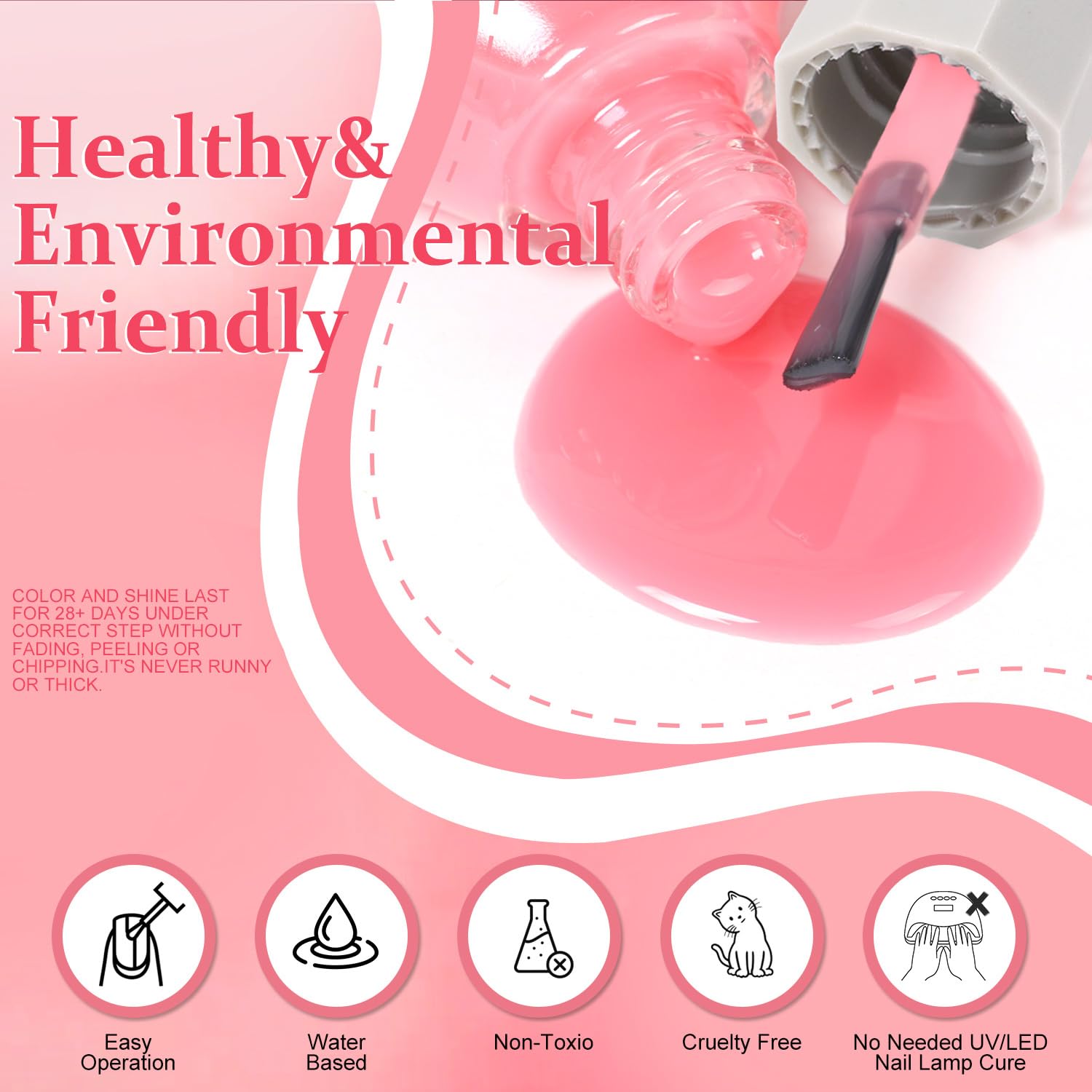 - NOTE: This nail polish is resistant to chipping and peeling, but for a longer-lasting shine, we recommend applying a top coat to keep the gloss for over 15 days!