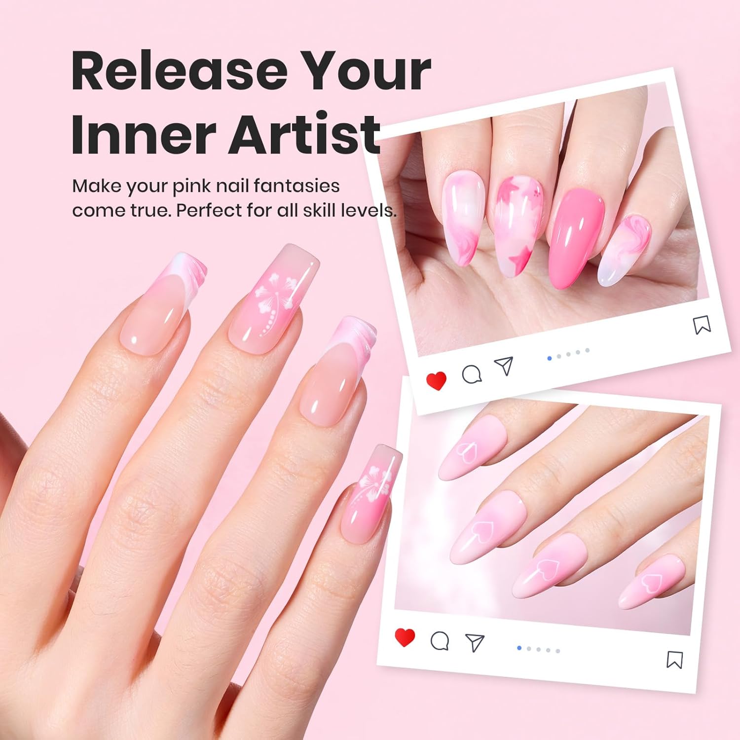 Beetles Nail Art Brushes, 6 Pcs Fingernail Art Design Pens, Pink Handle French Tip Ombre Clean Up Nail Brush Set for Gel Polish with Palette DIY Manicure Tools Gift for Women