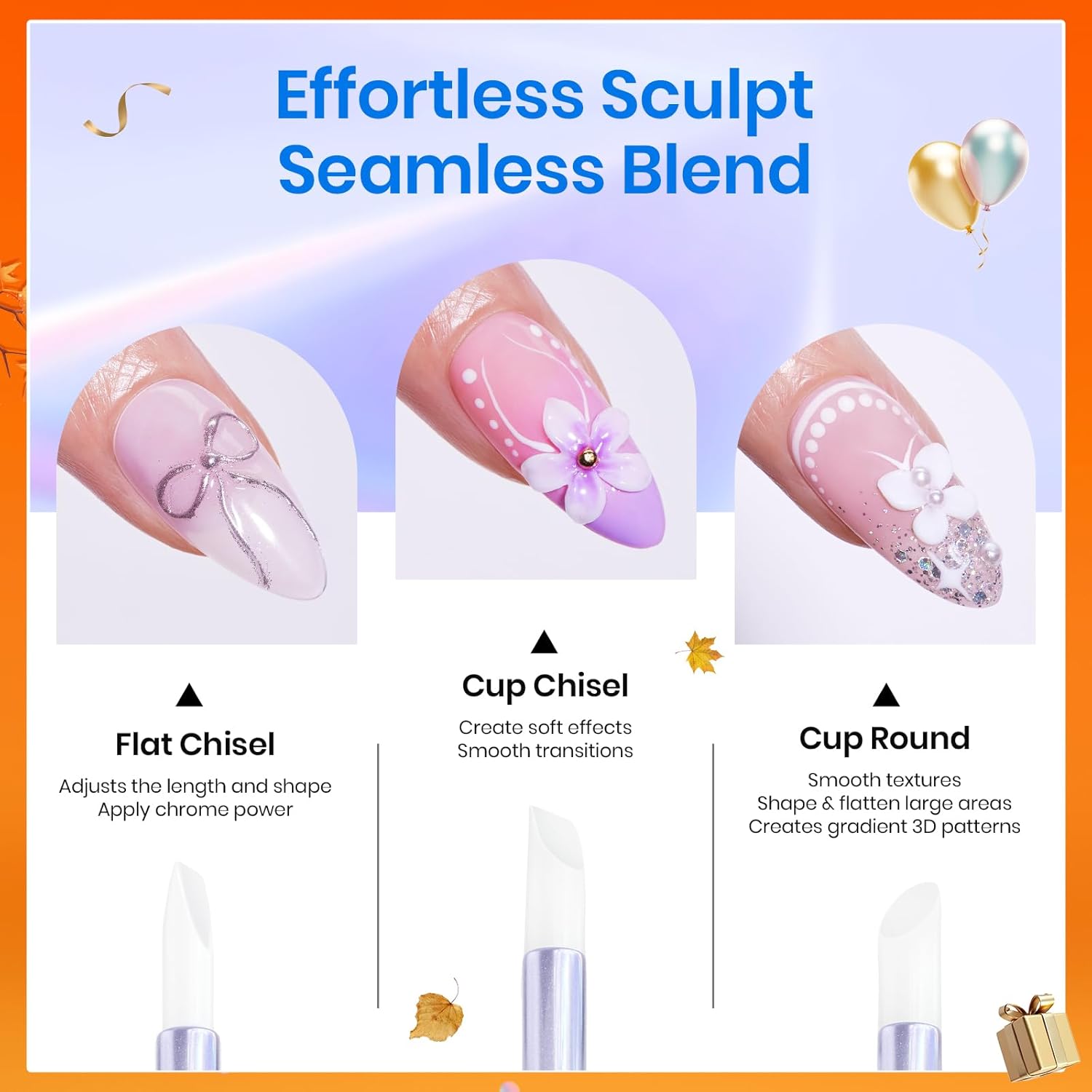 - 5Pcs Silicone Nail Tool: Equipped with five different silicone tips, it effortlessly carves intricate flowers and various patterns onto nails, catering to all your creative needs for 3D nail art. Whether you prefer minimalist styles or grand designs, it handles them all with ease.