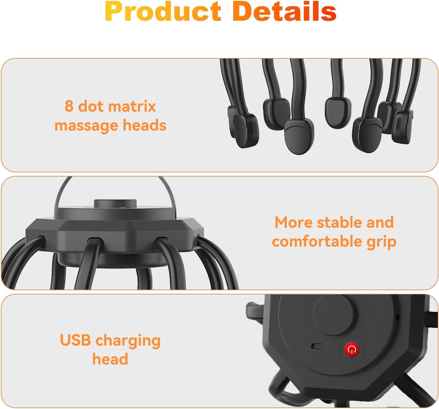 - 360° SCALP RELAXATION, FULLY RELAXING: Experience a Realistic Massage with our 360° simulated human finger kneading head massager, designed to relieve scalp stress and promote relaxation. The 12 prongs gently stimulate your scalp, relieving stress and promoting better sleep. Soft rubber beads enhance the soothing experience, leaving you feeling rejuvenated.