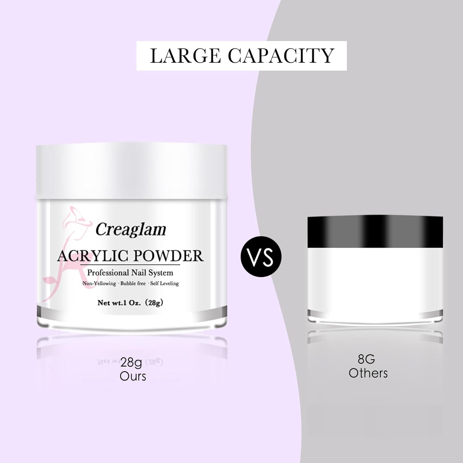 - 【Professional Acrylic Powder 3 Colors】Acrylic powder sets including 3 colors acrylic nail polish, clear,nuder, white. Creaglam acrylic nail powder set can form a protective layer with monomers that strengthens your natural nails and promotes nails stronger and won’t crack or peel. This Nail Acrylic Powders excellent adhesion, bubble-free, and self-leveling, with superior strength, durability, and flexibility