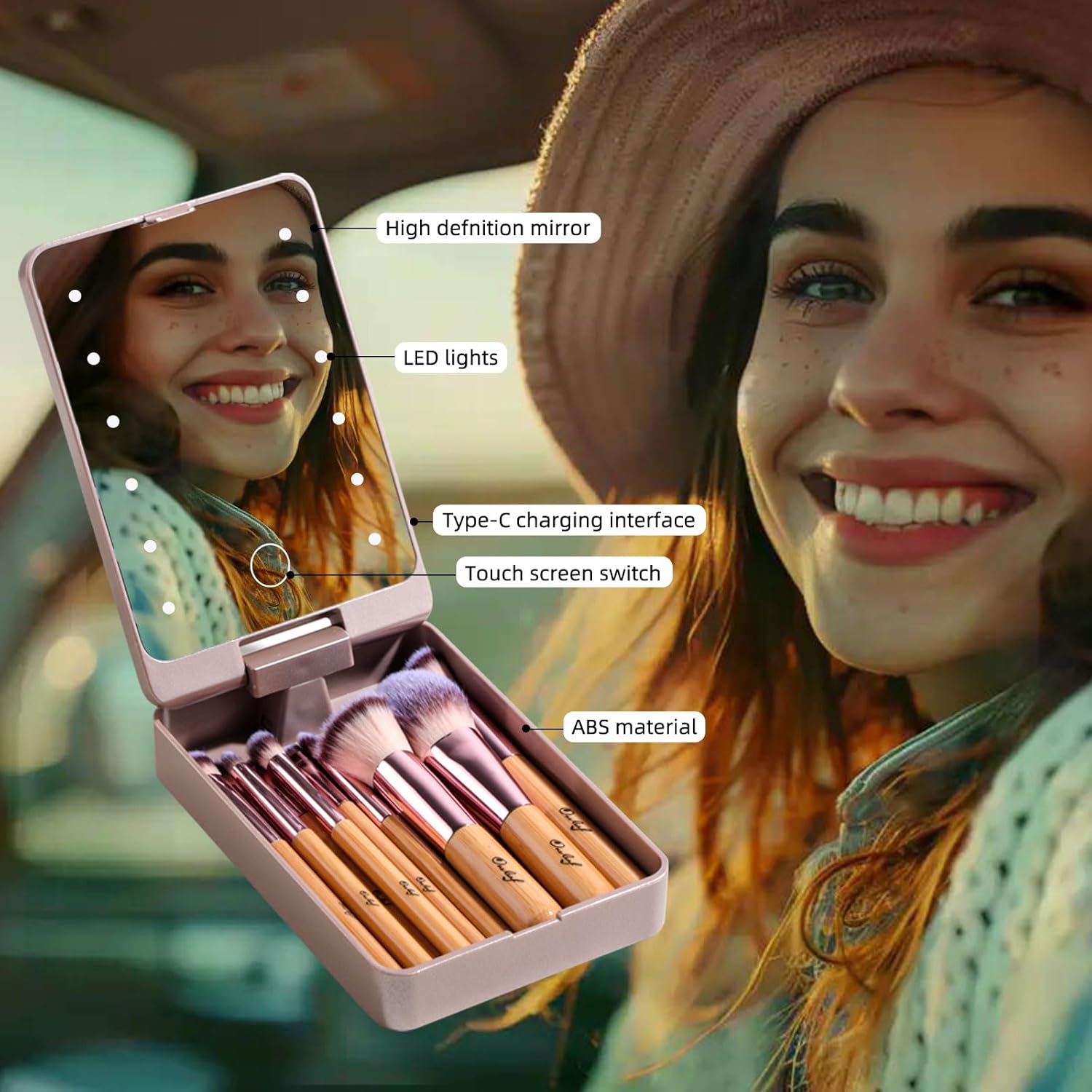- Elevate your makeup application process with Oneleaf's Travel Makeup Brush Set with LED Mirror - your ideal travel companion. Experience convenience and style like never before!