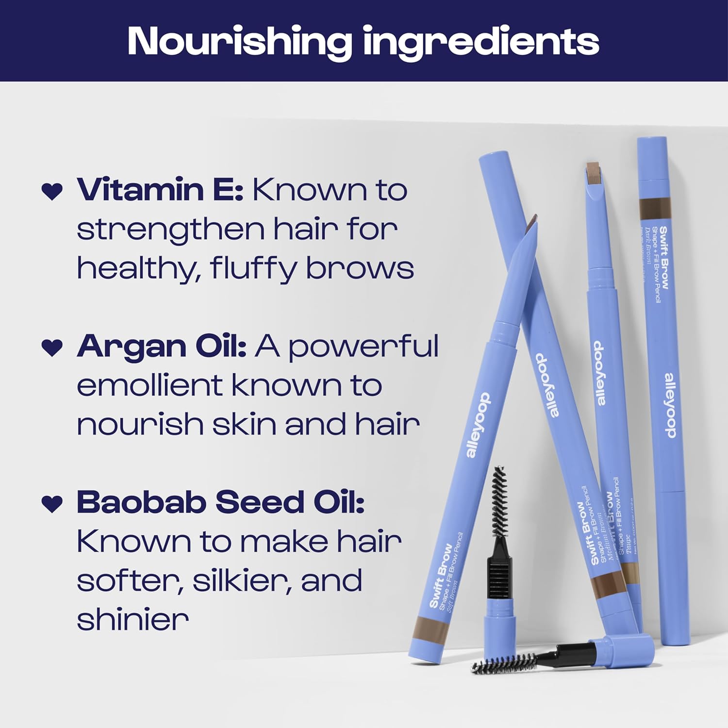 ALLEYOOP Swift Eyebrow All-In-1 Brow Definer with Built-In Sharpener & Spoolie Brush, Water & Smudge Resistant and Eyebrow Pencil for Women, Natural Matte Finish, Vegan, Cruelty-Free (Soft Brown)