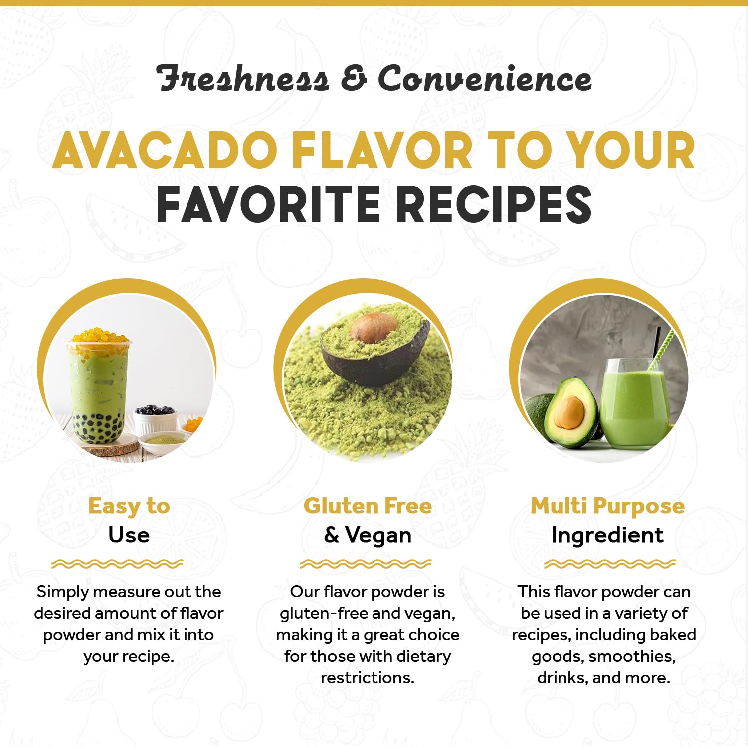 - ๐๐๐ฌ๐ฒ ๐ญ๐จ ๐ฎ๐ฌ๐: Simply measure out the desired amount of Avocado Bubble Tea Flavoring Powder and mix it into your recipe. This powder provides all the nutty flavor you need in a convenient form.
